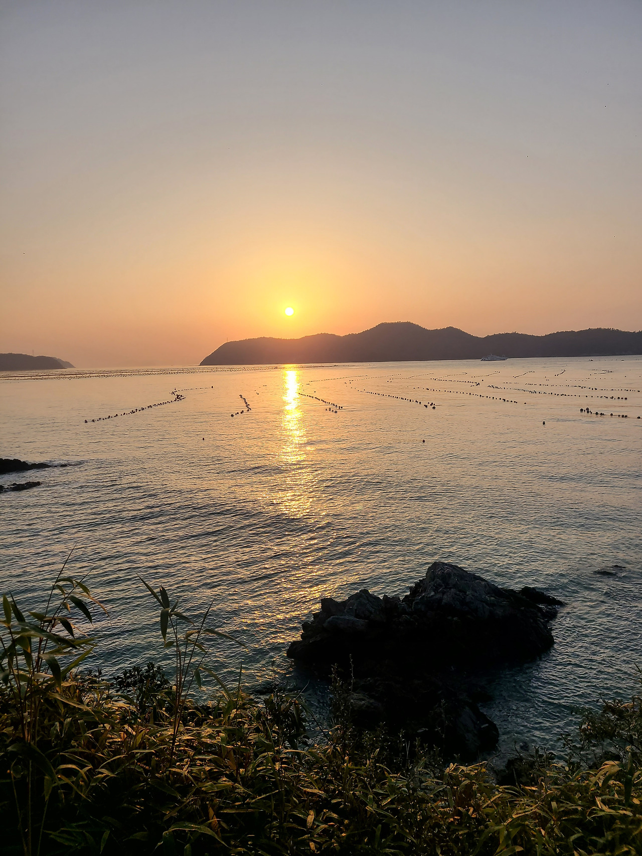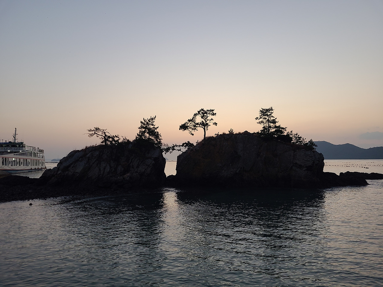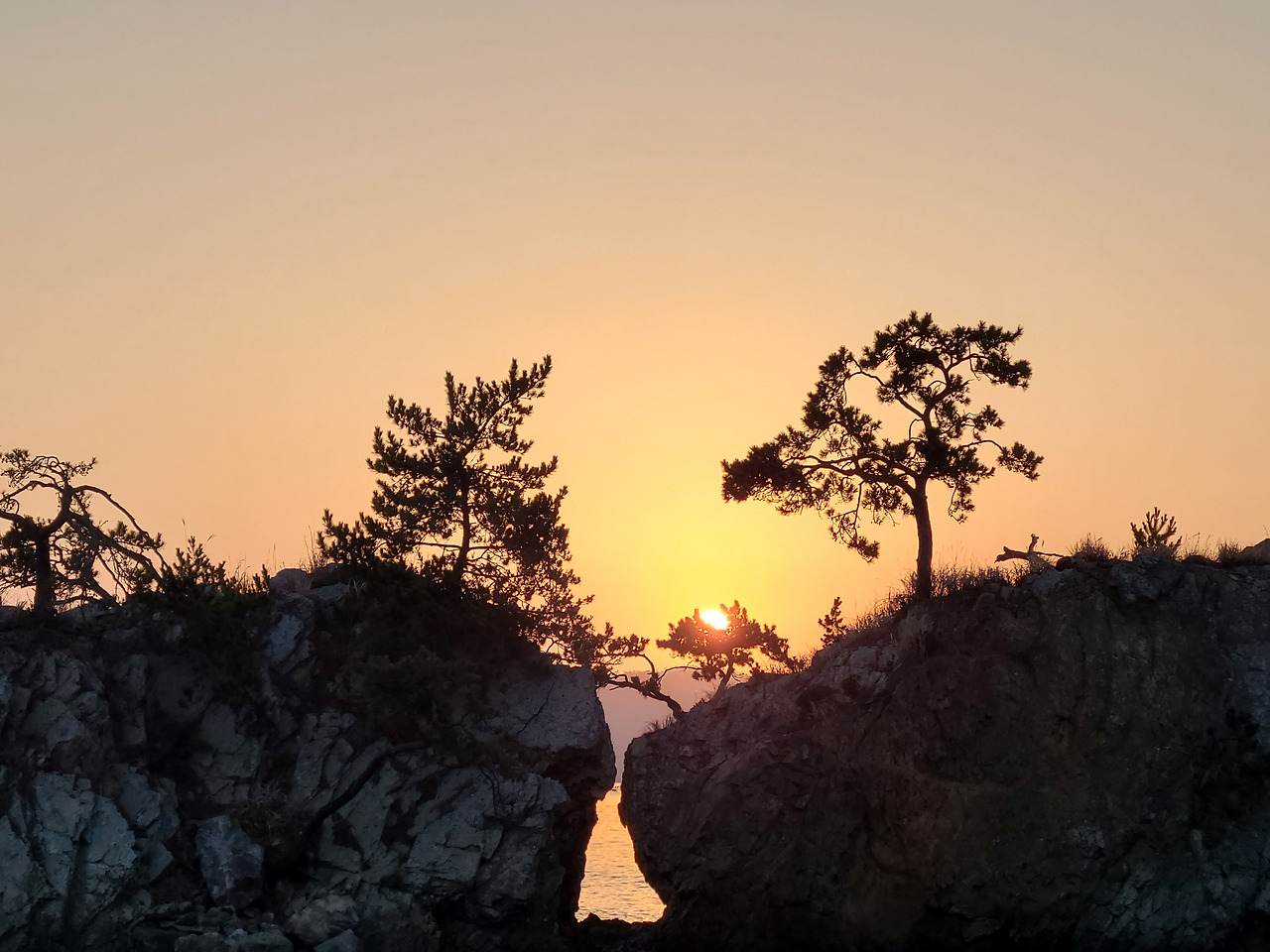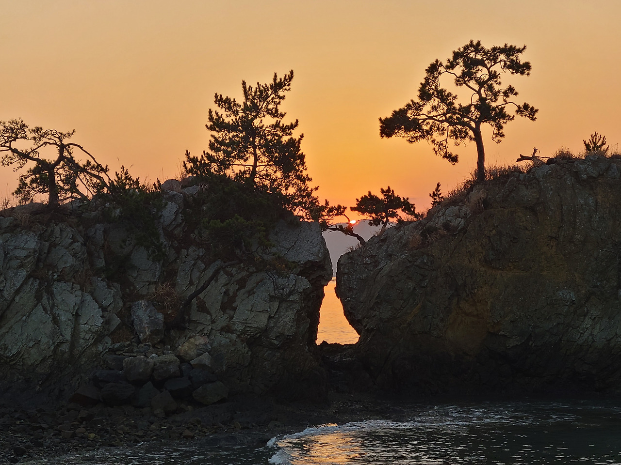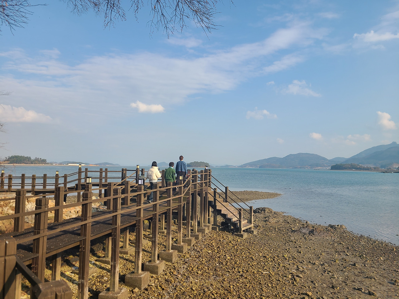 밤새 내린 서리가 코끝을 시리게 하는 다음날 새벽 일출 만나러 맴섬 간다. 맴섬은 땅끝 선착장 앞에 있는 두 개의 바위섬으로 일출과 일몰의 성지며 땅끝 마을의 상징적인 장소다. 일출이 뜨기를 기다리며 맴섬 앞 데크에서 서성인다. 하나둘씩 일출을 감상하기 위해 모여드는 관광객들 사이 갈두마을 이장이라 자신을 소개하며 일출 감상 위치를 알려준다.