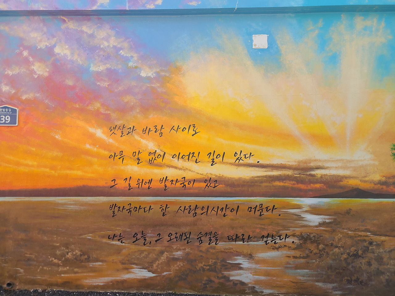 작가들은 다르다. 벽화에 새겨진 문장하나에도 허투루 지나치지 않는 직업병? ‘시간의 길을 함께 걷다’ 인하시인의 한마디 ‘시간’ 안에 모든 것들이 내포되어 있는데 ‘길’이 들어간 단어가 거슬린다는 지적이다. 공감한다. 그러나 피디들은