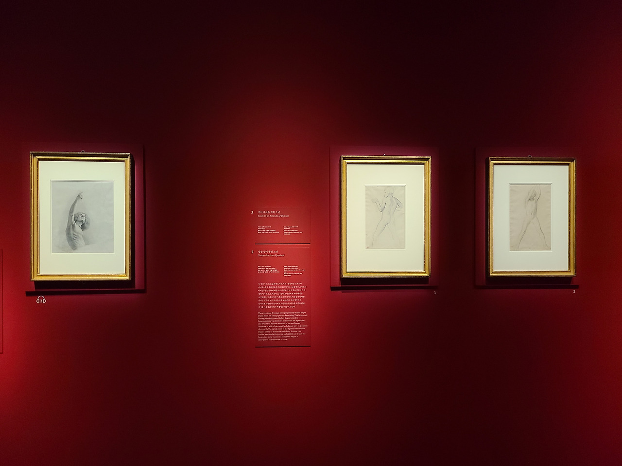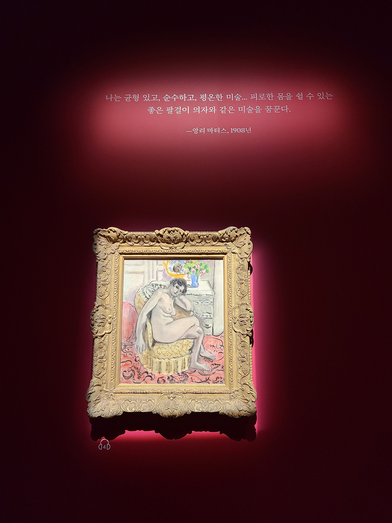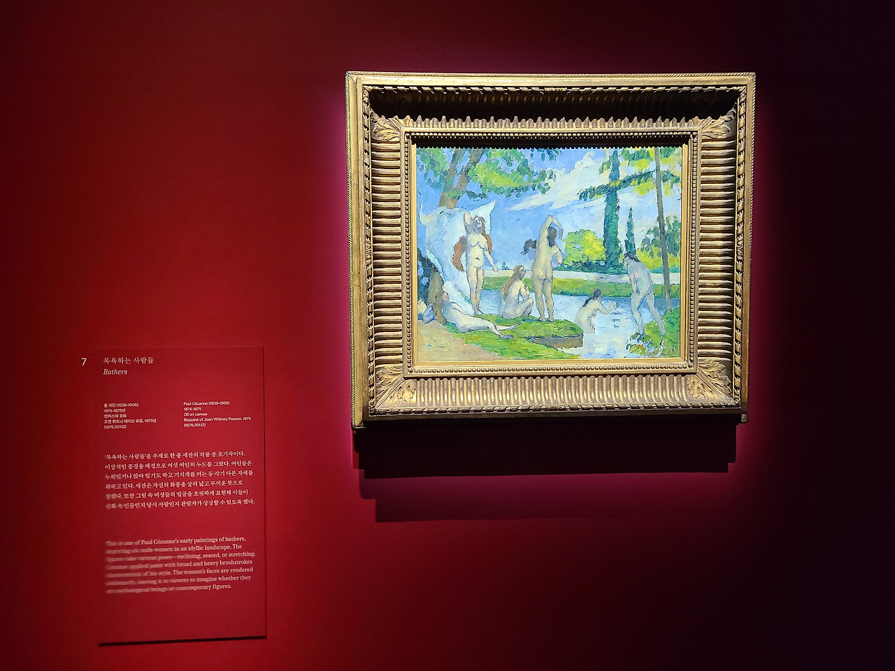 누드 드로잉 작품들을 지나고 ‘목욕하는 사람들’의 변주는 자연을 배경으로 빛과 색채로 인간의 몸을 표현하였는데 빛이 던지는 누드화 위로 다시 빛이 튄다. 튀는 빛의 속도에 따라 달라지는 빛의 떨림을 화폭에 담은 피에르 퓌비 드샤반, 고갱, 폴 세잔, 앙리 마티스, 쉬잔 발라동의 작품들이 나의 떨림으로 왔다.