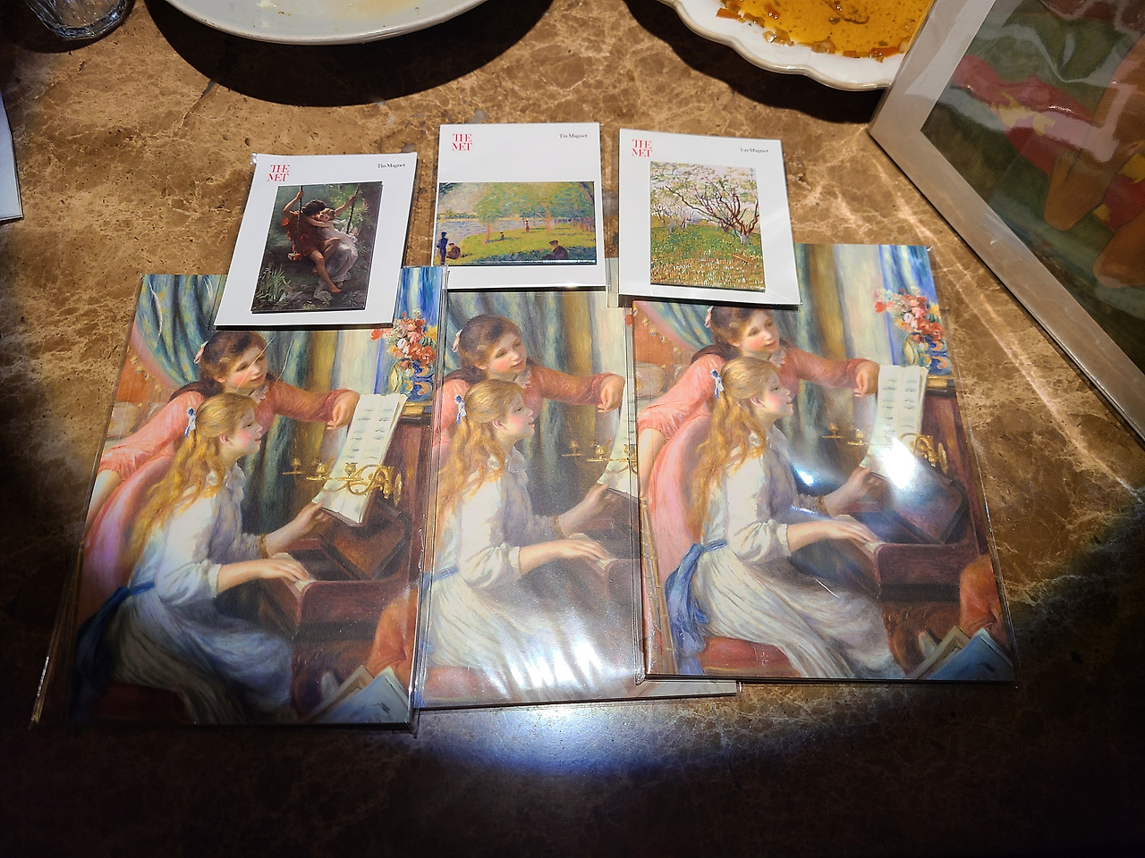 ‘빛과 물결이 만들어내는 아름다운 파장은 깊은 영감의 원천이 되었으며 찰나의 인상을 포착하고 그 빛의 떨림을 화폭에 담았다’는 영상을 감상한 후 뮤지엄 샵에서 ‘피아노 치는 두 소녀’의 표지 노트는 혜경 작가의 선물이다. 마그넷 ‘봄’은 서유작가, ‘꽃 피는 과수원’은 혜경작가, ‘그랑드 자트섬의 일요일 오후’는 내가 구입하여 기념으로 선물한다.