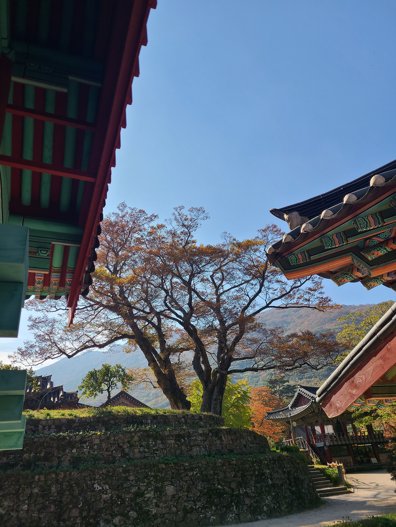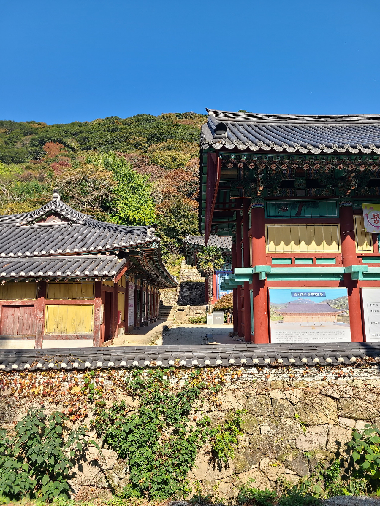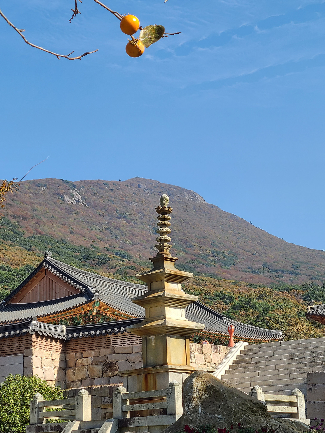 고구마 도시락 싸들고 대흥사 나 홀로 단풍구경 간다. 남쪽의 단풍은 한 템포 느리게 색이 칠해지나 보다. 절정도 절창도 아닌 어정쩡한 나무들 사이로 도착한 카페 유선에서 커피 한 잔 사들고 들어선 대흥사 구석구석 기웃거린다. 지난해 공사 중이던 대웅전은 완공되어 두륜산 누워있는 와불을 지키고 대웅전 오르는 계단 옆 감나무 붉은 감들이 먼저와 가을을 알리고 있다.