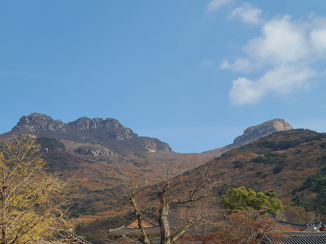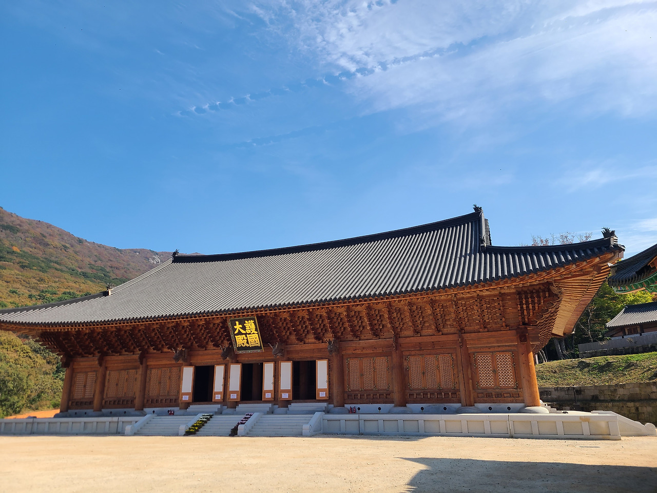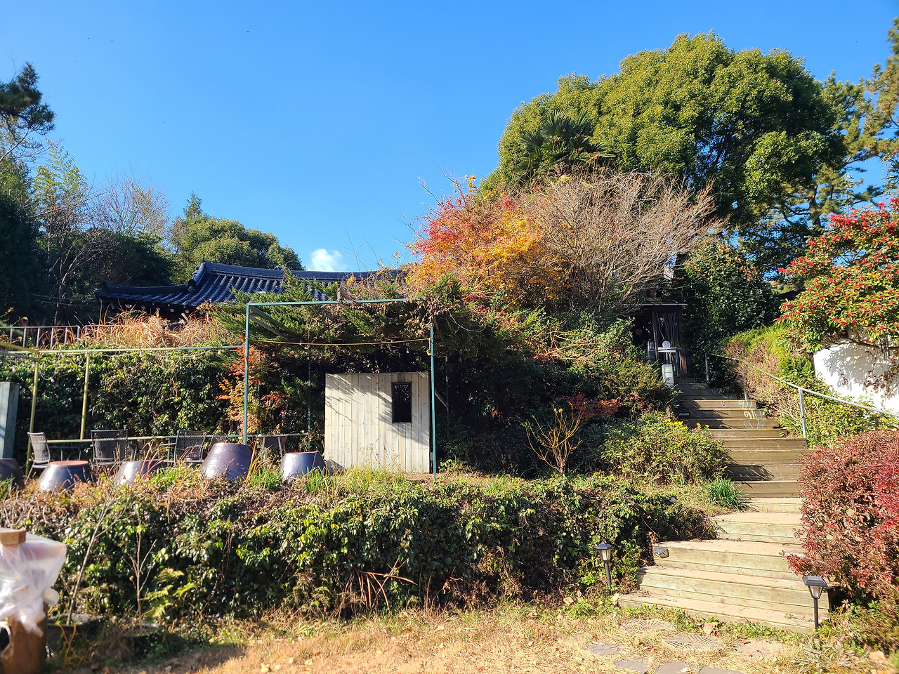 고구마 도시락 싸들고 대흥사 나 홀로 단풍구경 간다. 남쪽의 단풍은 한 템포 느리게 색이 칠해지나 보다. 절정도 절창도 아닌 어정쩡한 나무들 사이로 도착한 카페 유선에서 커피 한 잔 사들고 들어선 대흥사 구석구석 기웃거린다. 지난해 공사 중이던 대웅전은 완공되어 두륜산 누워있는 와불을 지키고 대웅전 오르는 계단 옆 감나무 붉은 감들이 먼저와 가을을 알리고 있다.