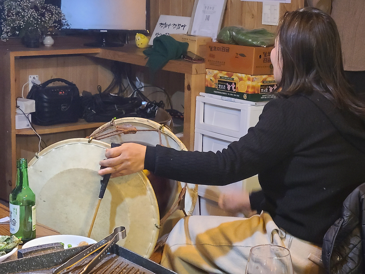 그녀는 떠났고, 나는 찬바람에 푸른 잎들이 파르르 떠는 녹차 밭에서 시방(지금)의 오두막 구들장의 온기를 궁둥이 내주었던 날, 화로에 군고구마 제 몸 불사르며 달콤함을 전해주던 날. 장구 장단에 판소리 한 자락 뽑던 날들이 내 어깨 위에 걸터앉는다.