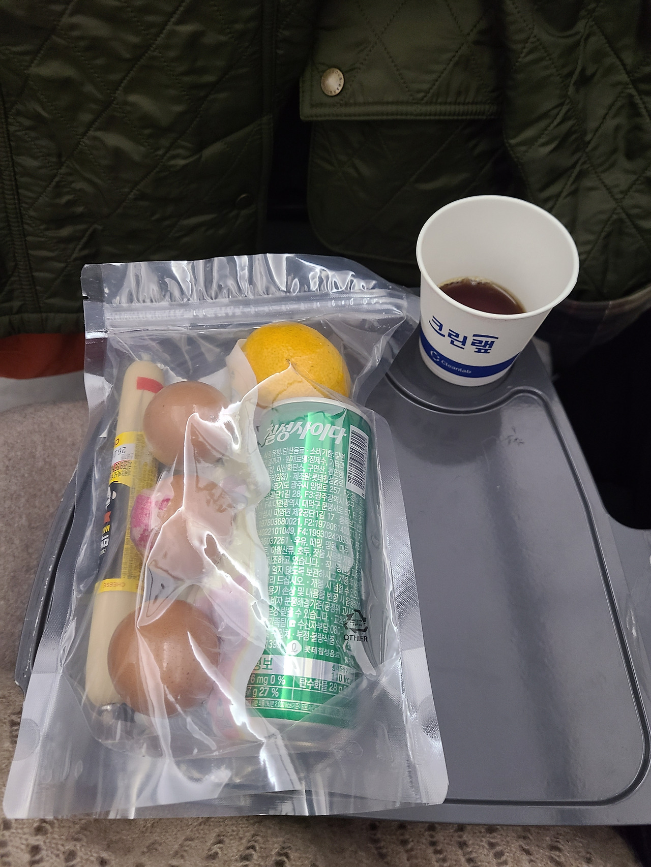 나는 삶은 계란과 사이다를 사이에 두고 앉아있지