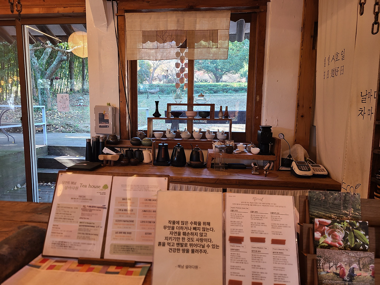녹색 나무 아래 쌓인 흰 눈 바라보다 어떤 그리움이 여기까지 오게 하였을까 다시 그녀가 궁금해졌다, 그런 그녀가 녹차 밭을 놓고 집을 나섰다.