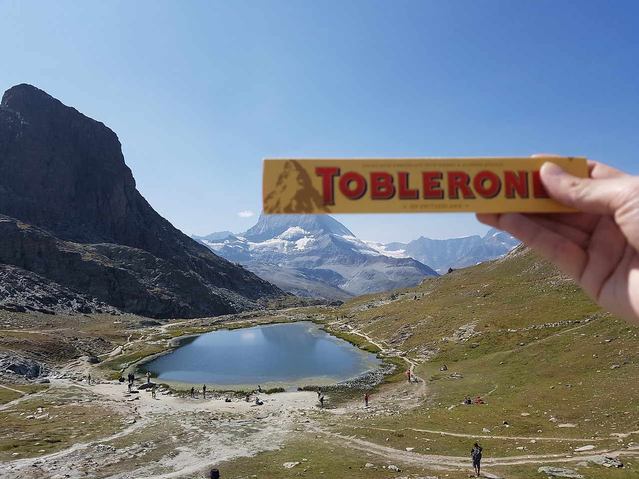 마터호른이 반영된 호숫가에 돗자리 펴고 아들과 나는 샌드위치에 설산의 물줄기를 적신다.