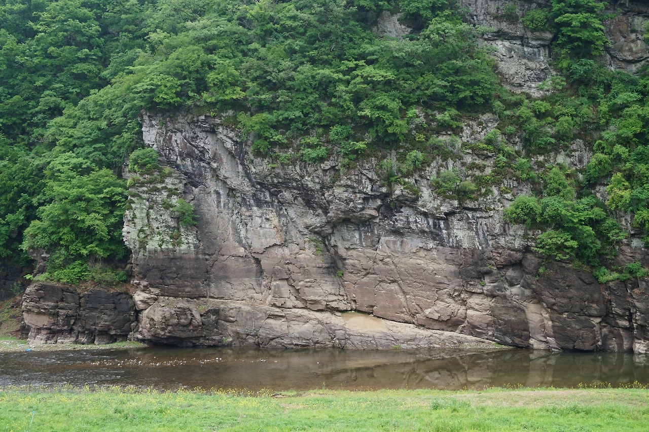 비 온 뒤의 청량감과 주변의 한적함 사이로 삐쭉삐쭉 솟아난 잡풀 너머 암각화는 거리가 멀어 자세히 볼 수 없고, 세 개의 망원경이 설치되어 있지만 망원경으로 봐도 잘 모르겠다. 시력이 좋지 않은 나는 마음으로 보아야 할 듯하다. 카메라 렌즈를 끝까지 당겨본다. 선명하지는 않고 구분되지 않는 암각화 새겨져 있는 듯하다. 무성하게 자란 대곡천 주변 잡풀들 사이로 흐르는 물줄기 따라 잡념들 흘러 보내고 영남알프스 간다.