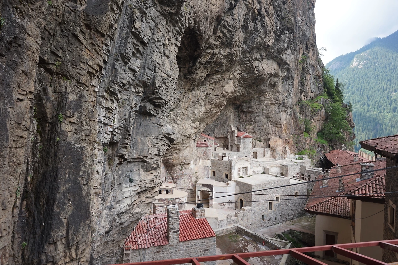 새로운 이름 낯선 얼굴이 모여 앉은 뜸에 끼여 알틴데르 계곡 입구에서 케밥을 먹는데 숲 헤치고 여름을 싣고 온 새 한 마리 계곡의 물소리 따라 날아간다. 해발 1,200m의 가파른 절벽 테오도시우스 1세 때 아테네 출신 수도사 바르나바스와 소프로니오스에 의해 386년 바위를 쪼아서 만들었다는 수멜라 수도원. 로잔 조약으로 수도사 떠난 수도원은 퇴락. 1972년 박물관으로 복구되면서 일반인에게 개방되었다지만. 지금도 터키 정부가 복원 작업을 계속하고 있으며 복원수리 후 우리가 방문할 때쯤이면 재개관(2019.5)할 거라는 기대를 안고 한발 한발.