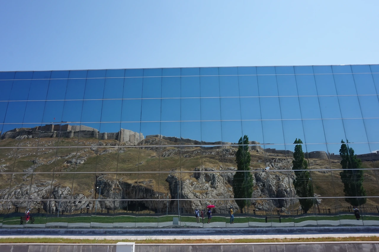 돌덩이 무게만큼이나 무거운 마음 누르며 반 박물관 앞. 보수 중이라서 관람할 수 없고 대형 박물관 유리벽의 웅장함과 유리벽에 반영된 반 성채가 막 달려들 것 같은, 유리벽 속으로 빨려갈 것 같은, 이 풍경과 사물들이 내 눈을 덮치고 있다.