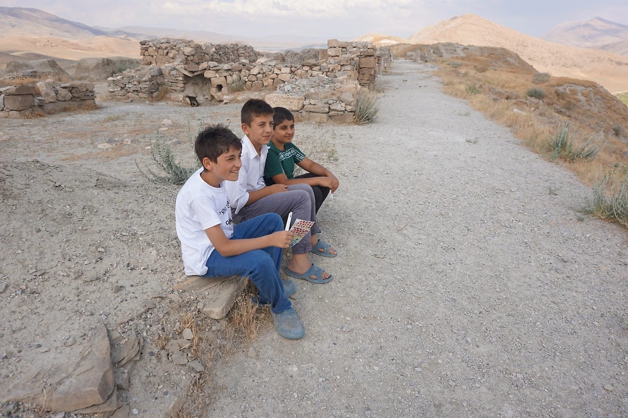 돌무더기 엉키고 헝클어진 언덕 오른다. 우라르투의 왕실 요새 차부쉬 테페. 스키타이 족의 침입으로 파괴되었다는 동쪽 할디 신은 우라르투에서 가장 중요한 신이었다 한다. 한낮의 뜨거운 태양 온몸으로 꼬옥 안고 언덕 오른 2000년 전의 고대 유적지는 돌무더기로 뒹굴며 잡풀 속에 잠들어있고, 2000년 후의 나는 망망한 귀르 프나르 평야를 멍하니 바라본다. 주인 잃은 채 외롭게 있는 무너진 요새 저 건너 서쪽 사르두리 2세가 건설한 이르무쉬니 신전 우라르투의 설형문자(쐐기문자) 그늘을 만들고 더위에 쉬어가라 한다. 땅속에 묻혀 숨을 쉬지 못하는 창고 터 항아리 잡풀 삐죽삐죽 부스럭 거리는 흙더미 사이로 항아리 조각 고개 내밀고 있다. 하수구. 세면대. 절구통 나뒹구는 사이로 현지 꼬맹이들 졸졸졸 따라다닌다. 인숙 선생님이 선물한 스티커 팔랑거리며 사진 찍는다.