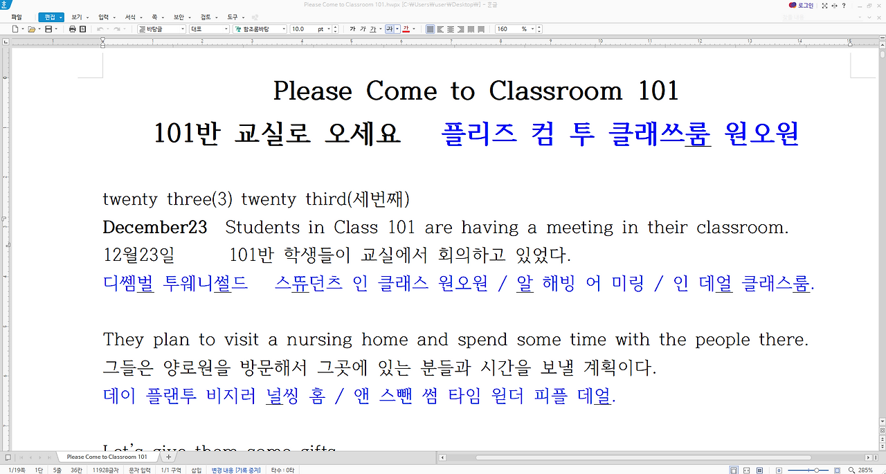 중학교 때, 성적을 잘 받아오는 방법은 딱 하나이다. 교과서에 실린 지문들과 대화 문장들을 입에서 툭 치면 나올 정도로 외우는 것이다. 분명 그 만점자 친구들은 그렇게 공부했을 것이다. 걔네 머리엔 어느 책 어디에 어느 내용이 있는지 다 들어있다.