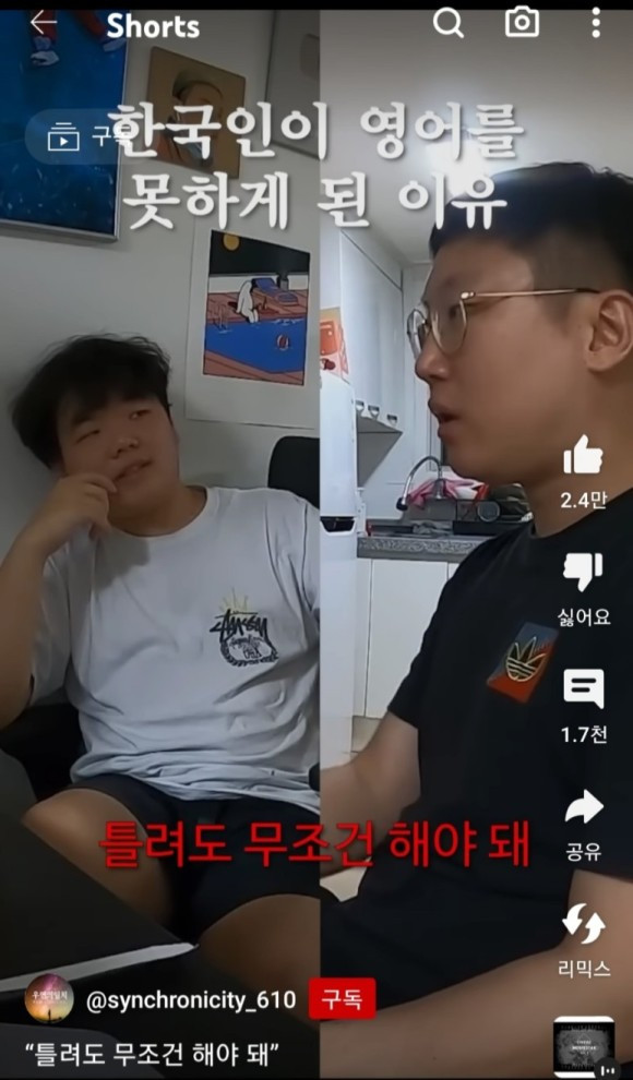 이 친구는 나를 중국에서 처음 만났기 때문에 내가 중국어를 잘하는 건 당연하다고 생각했지만, 영어실력은 좀 의아해했었다. 영어는 어디서 배웠냐는 질문에, 어릴 적 집에서 배웠다고 했다. 어떻게 배웠냐 묻길래 엄마가 영어 밑에 한글 발음을 달아준 거 그냥 집에서 매일 읽었다고 답했다. 그리고 이렇게 외국어 배우면 엄청 효과적이야~라고 했더니, 그 친구는 ‘한글로 영어 배우면 안돼’라고 했다. 반박 근거는 딱히 없었지만 어쨌든 절대 해서는 안 되는 방법이고, 결과가 아무리 좋아도 그건 진짜 영어가 아니라는 것이다.