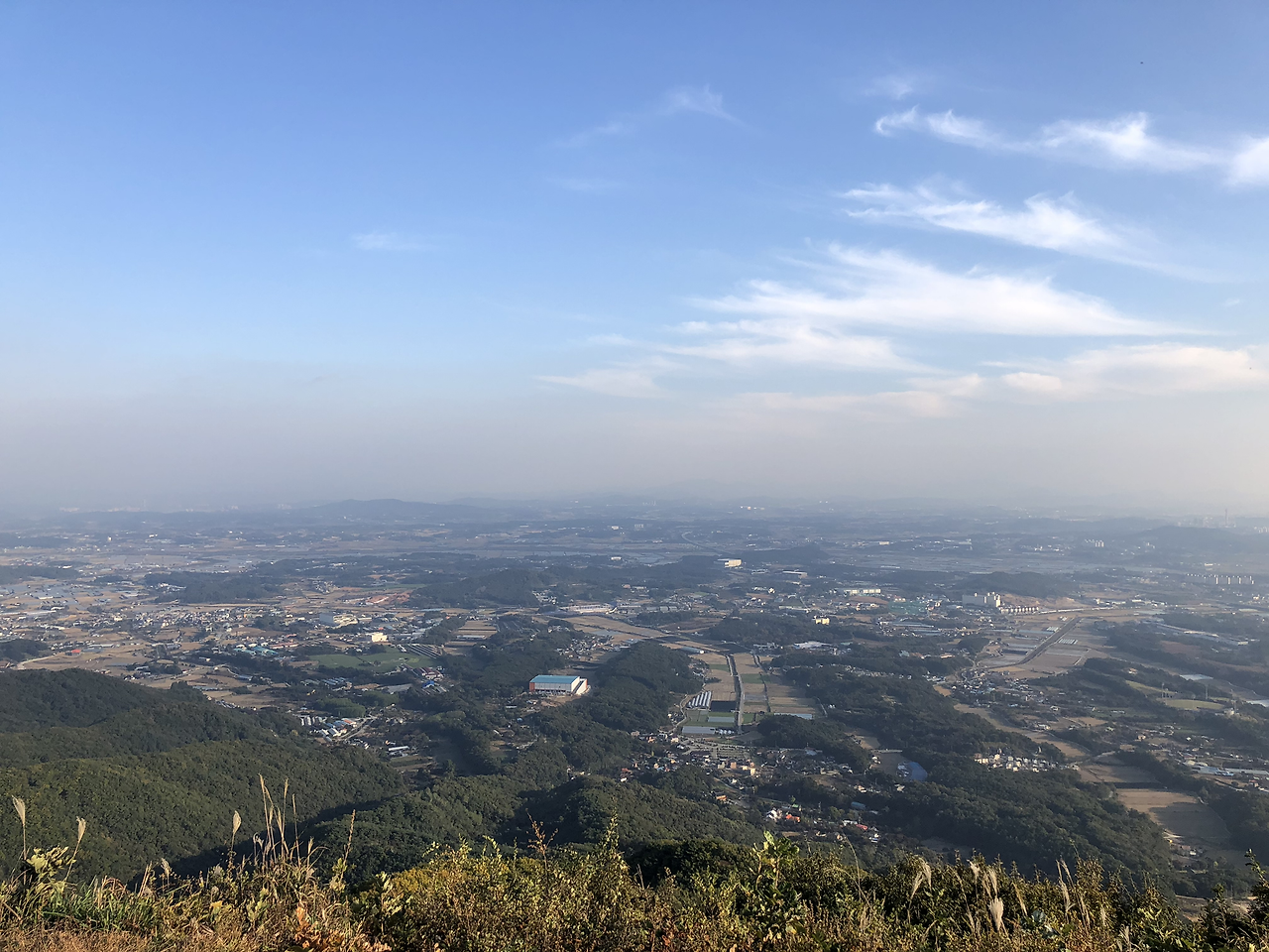 원적산도 역시 만만한 곳은 아니었다. 원적봉의 탁 트인 전망을 만나기 위해서 깔딱 고개를 넘어야만 했다. 시작부터 오르막길의 연속이었던 것. 마지막에는 계단이 끝도 없이 이어지는 것만 같았는데 한 걸음 한 걸음 내딛다 보니 갑자기 눈에 이런 모습이 들어온다. 이천에서 가장 높은 산이라고 하더니 정말 시내의 모습이 한눈에 들어온다. 밤이 내리면 저 멀리 보이는 마을에서 얼마나 아름다운 야경을 만날 수 있을지 마음이 두근거리기 시작했다.