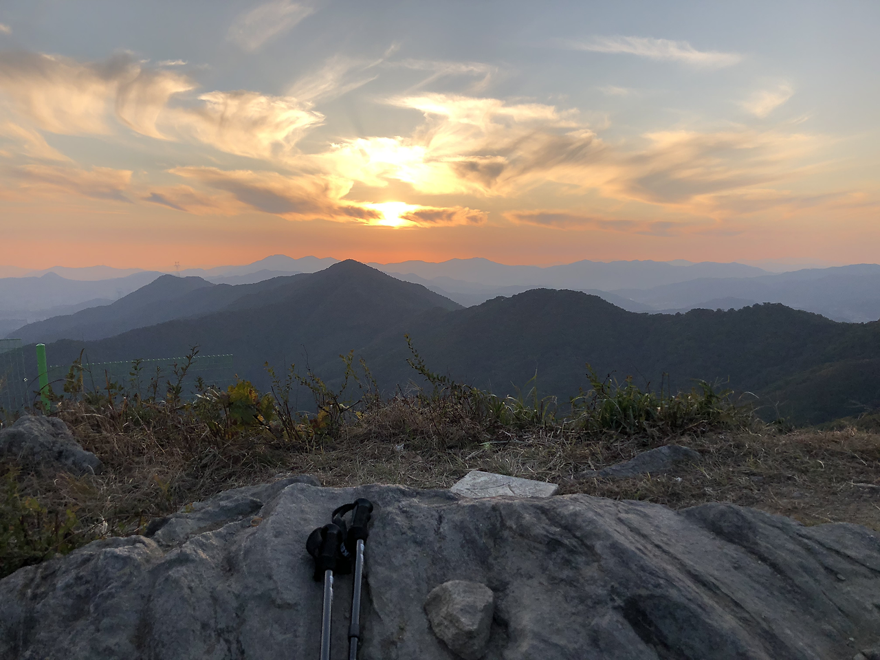 산을 올랐으니 내려가야지. 이른 아침의 하산길은 언제나 뿌듯하다. 산에 대한 고마움과 스스로에 대한 믿음으로 마음이 따뜻하게 채워진다. 나뭇잎 사이로 해가 비춰오고 진한 숲의 향기를 맡으며 걷는 길. 우리는 또 한 번의 기분 좋은 마침표를 찍으며 하산하면 뭘 먹을지 진지하게 생각하기 시작한다. 국밥을 먹을까. 순두부를 먹을까. 아니면 이천쌀밥? 확실한 건 디저트는 달콤한 푸딩이다. 부드러운 푸딩 같았던 지난 노을의 황홀함이 여전히 마음에 남아있으니. 아무래도 아주 오랫동안 그 노을과 밤의 여운이 가시지 않을 것이다.