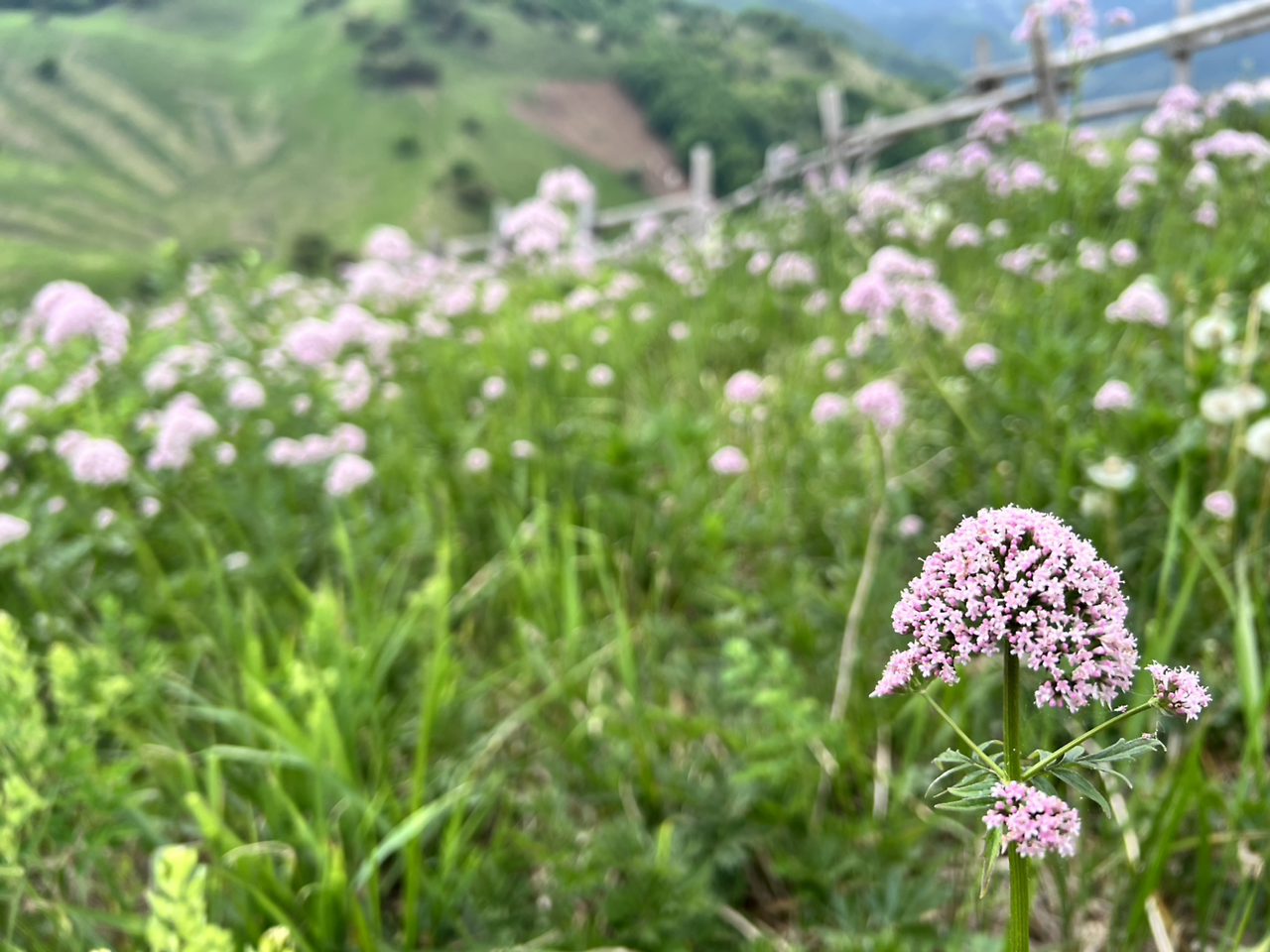 그렇게 쉬어가며 오르고 올랐더니 시야가 확 트이면서 넓은 초지가 나타났다. 가을이면 이곳이 황금 억새로 빛나겠지. 빛나는 가을도 멋지겠지만 나는 여름의 민둥산이 참 좋았다. 사방 푸른 풀들이 바람에 이리저리 흔들리는 모습에 반하여 걸음을 멈추고 그 싱그러움에 빠져들었다. 그리고 그 초록빛 사이로 한들거리던 야생화가 참 좋았다.