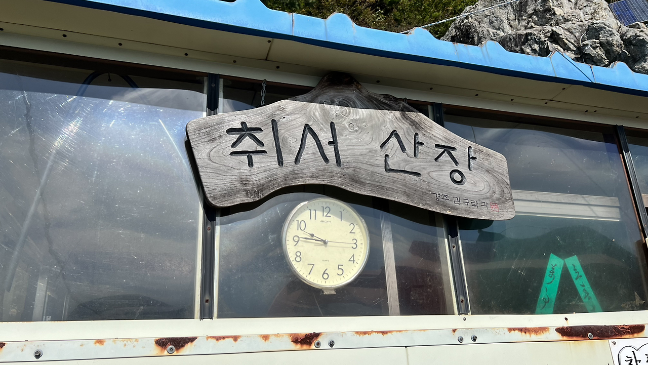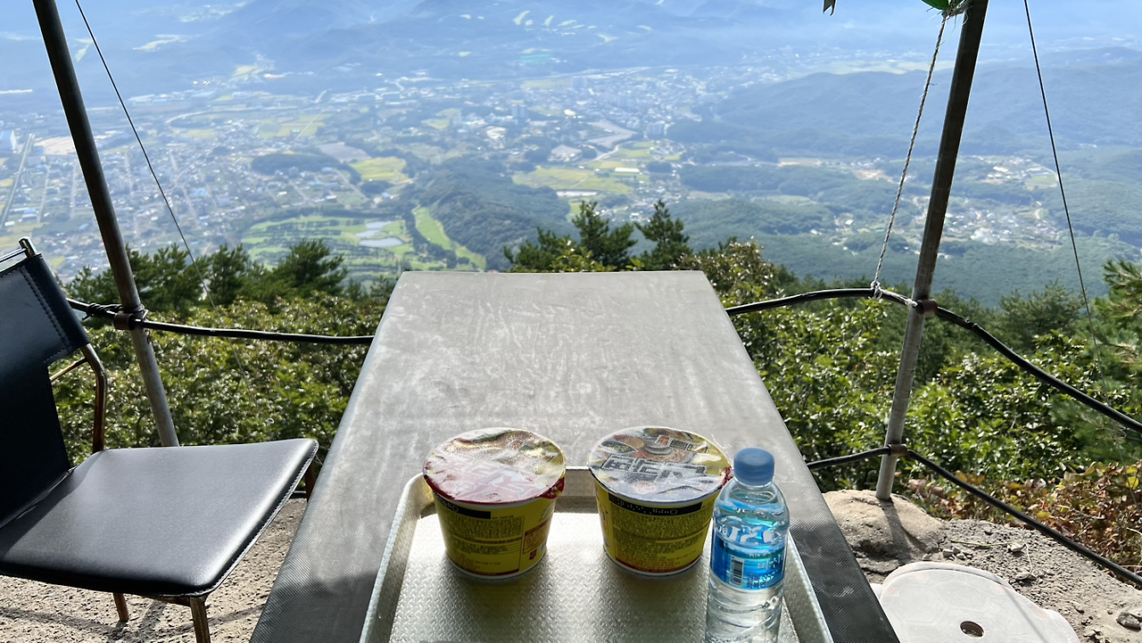 정상에서 잠시 쉬었으니 이제는 내려가야 할 때다. 하산길에 있다는 취서 산장에서 아침을 먹을 계획이었기에 내려가는 길이 너무나 가볍다. 아름다운 풍경을 뒤로하고 감이 아쉬울 법도 하지만 라면 맛집이라는 취서 산장에 어서 가보고 싶은 마음에 가볍게 발걸음을 옮겼다. 가파른 내리막길을 한참 내려갔더니 파란 지붕의 취서 산장이 나타났다. 그리고 왜 여기가 라면 맛집인지 바로 이유를 알아챘다. 컵라면이 다 같은 맛 아니겠어 할 수도 있지만 이곳 컵라면은 산 위에서 바라보는 풍경으로 말미암아 더욱 특별해진 것이다. 산 아래 풍경을 시원하게 바라보며 먹는 컵라면의 맛이란!