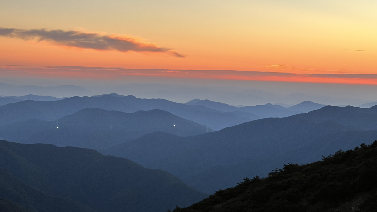 산과 산을 이어주는 능선을 따라 해가 질 때까지 걷고