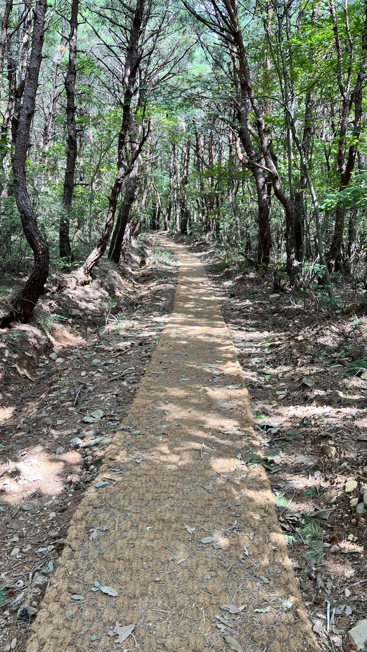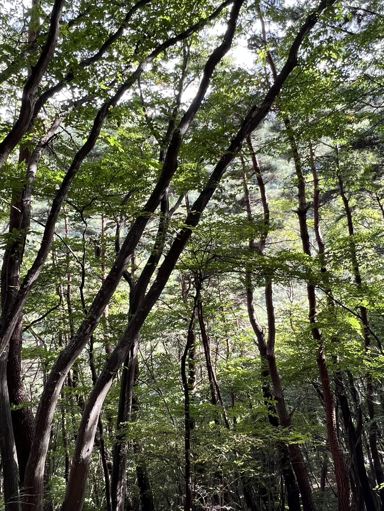 취서 산장에서 시간을 보내고 나니 이제 진짜 내려가는 일만 남았다. 아래로 내려갈수록 울창한 숲이 나타났다. 크고 단단한 소나무가 숲길 곳곳에 있어 솔향을 맡을 수 있었다. 하산길 경사가 상당해서 발에 힘을 주고 내려가는 일이 만만치 않았지만 향긋한 솔향에 힐링되는 기분이다.