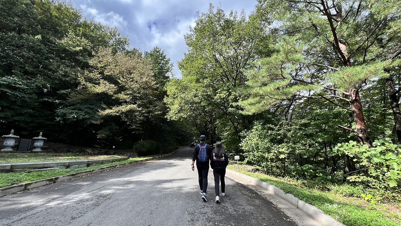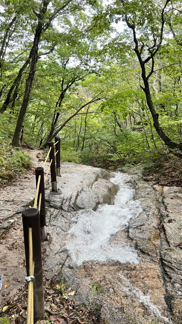 바다도 보고 울산바위도 보고 포도도 다 먹었으니 이제 산을 내려가야겠지? 우리는 왔던 길로 다시 산을 내려가기 시작했다. 길이 미끄러워 조심하며 내려갔는데도 내려가는 길은 훨씬 수월했다. 올라갈 때는 거의 2시간 가량 걸린 길이 내려갈 때는 40분도 안 걸렸다.