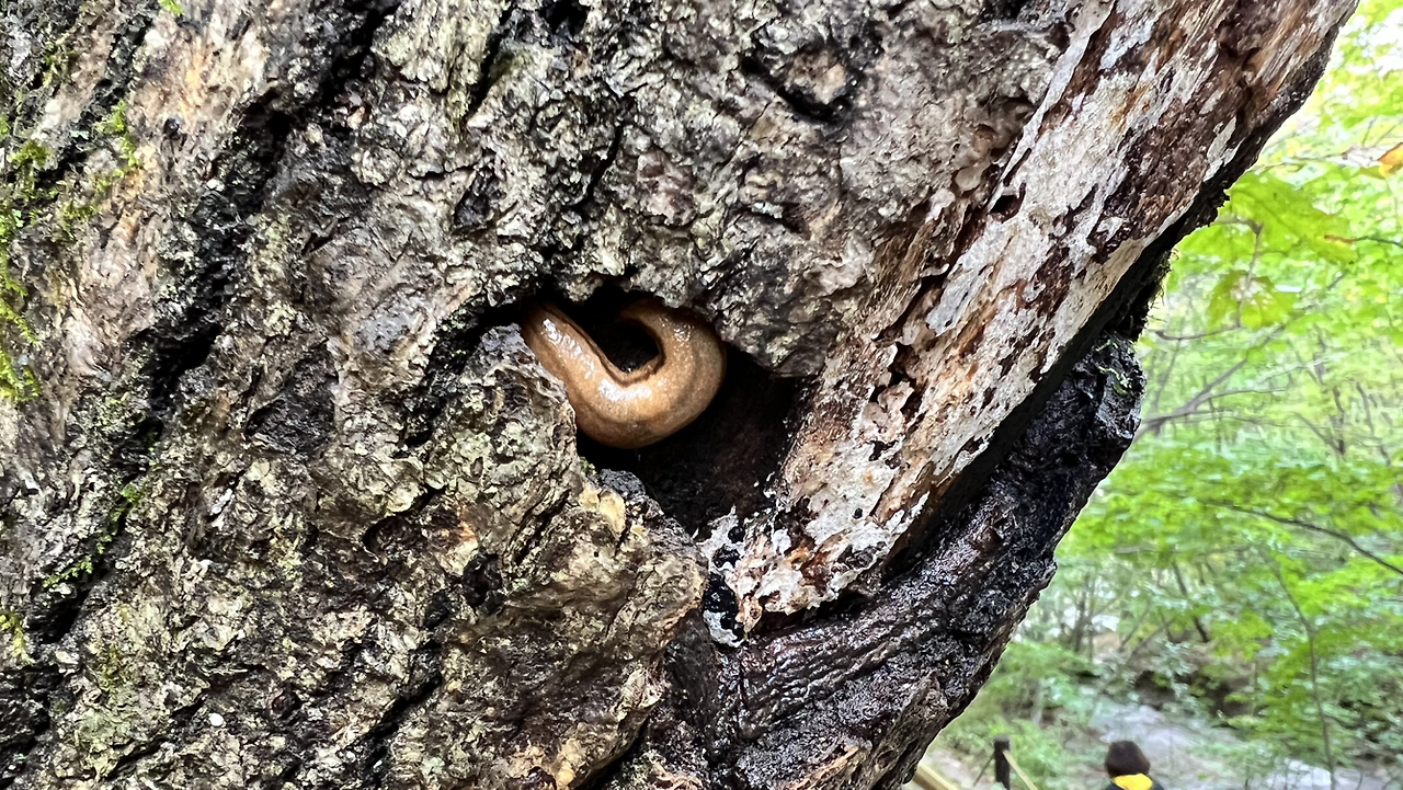 화암사 입구에 계곡이 시원하게 흘렀었으니 계곡 물 소리가 들리면 거의 다 내려왔다는 뜻이다. 계곡 물에 손을 담가보고 그 청량함을 잠시 느끼고서 산을 내려가는데 나무옹이에서 살고 있는 민달팽이를 만났다. 아이들은 신기한 듯 한참 들여다보았다. 숲에서 만나는 생명들이 주는 선한 기운을 잠시 느끼고 배가 고파진 아이들은 순댓국을 어서 먹으러 가자고 재촉한다. (설렁탕이나 순댓국을 아주 좋아하는 아이들입니다)