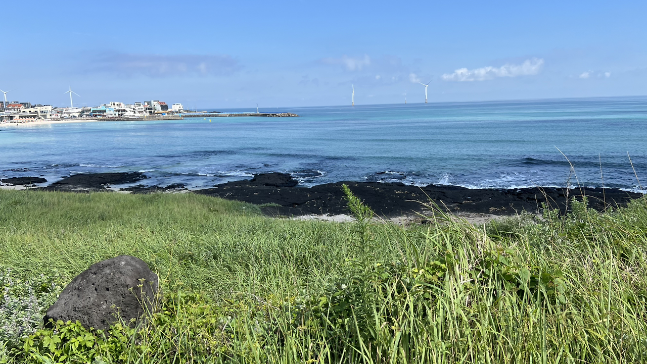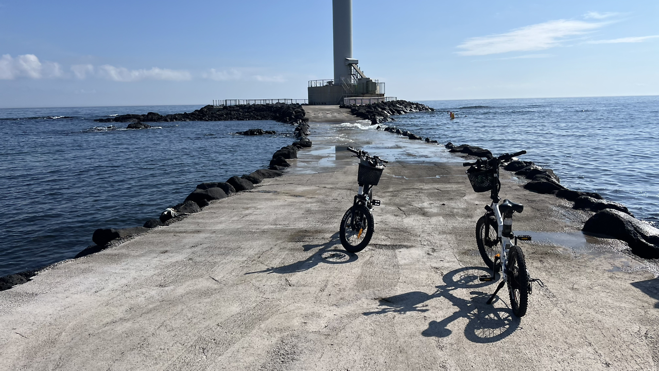 서쪽으로 숙소를 옮기는 날 자전거를 반납하고 걸어서 돌아가는 길에 뜨거운 햇살을 따라 해안도로를 따라 걷는데 무척 아쉬운 마음이 들었다. 자전거만 탔어도 이 뜨거운 햇살을 몇 분이면 지나갈 수 있었을 텐데 하면서 말이다. 아무래도 자전거를 타고 달리는 것 중 가장 좋았던 것은 바다도 바다지만 뜨거운 여름 햇살을 견딜 수 있게 해 준 바람과 속도였던 거 같다. 여행 마지막날, 아들에게 이번 여행에서 가장 좋았던 것을 물어보니 단연코 전기 자전거 타기라고 말한다. 언젠가는 자전거를 타고 제주도섬 전체를 돌아보고 싶다면서. 아무튼 한 번쯤은 제주에서 전기자전거를 타보는 건 정말 즐거운 일임엔 틀림없다.