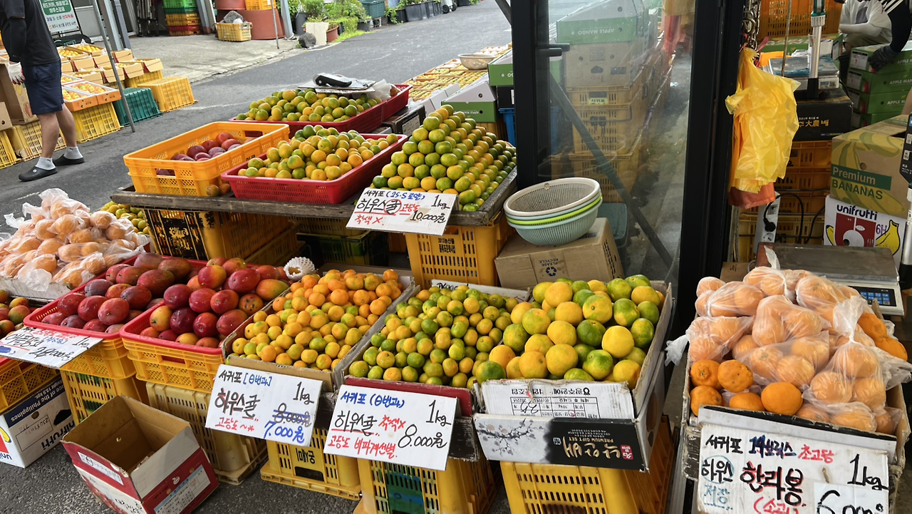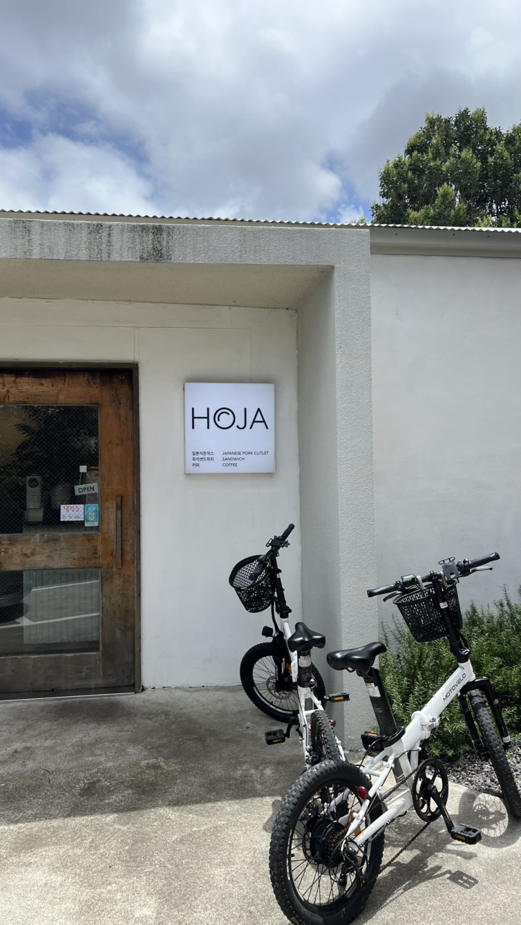 그렇게 첫 라이딩 이후로 전기자전거를 좀 더 빌려 세화에 머무는 동안 내내 차는 두고 자전거를 타고 다녔다. 자전거를 타고 오일장에 가서 과일도 사 오고, 점심 먹으러 갈 때도 저녁 먹으러 갈 때도 자전거를 타고 설렁설렁 동네를 누비며 다니다 보니 자전거가 너무나 편해졌다. 첫날의 무서움은 온데간데없이 사라지고 하나로마트에 장 보러 갈 때도 휘리릭 자전거 타고 다녀오니 소박한 마을의 풍경도 한눈에 들어왔다.