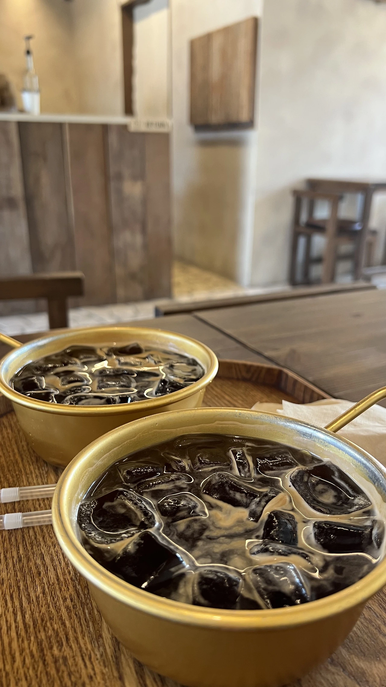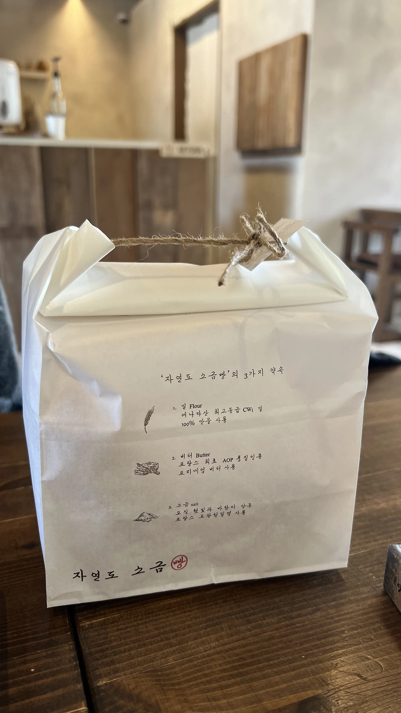 차가운 얼음 조각이 공기 중에서 챙그랑 소리를 내며 떠 다니는 차가운 날씨였지만 아이스커피를 시켜놓고 소금빵을 사 왔다.(추워도 아아를 마시는 분 계신가요? ㅎㅎ) 소금빵은 하루에 여섯 번 구워져 나온다는데 마침 빵이 나오는 시간이어서 갓 구워진 소금빵을 먹을 수 있었다. 막걸리잔에 수북이 담긴 얼음 동동 아메리카노의 감성과 버터향 가득한 소금빵이 꽤나 잘 어울렸다. 역시 나오길 잘 생각이 들었다.