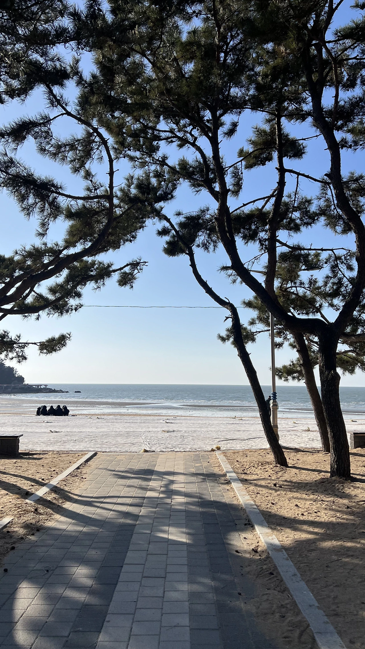 커피를 마시고 나오니 해변이 지척이었다. 솔숲을 따라가니 파란 하늘을 담은 파란 서해 바다가 펼쳐졌다. 사진을 찍으려고 셔터를 누르는데도 손이 너무 시려서 몇 장 찍지 못하고 호주머니에 손을 넣고 해변을 걸었다.