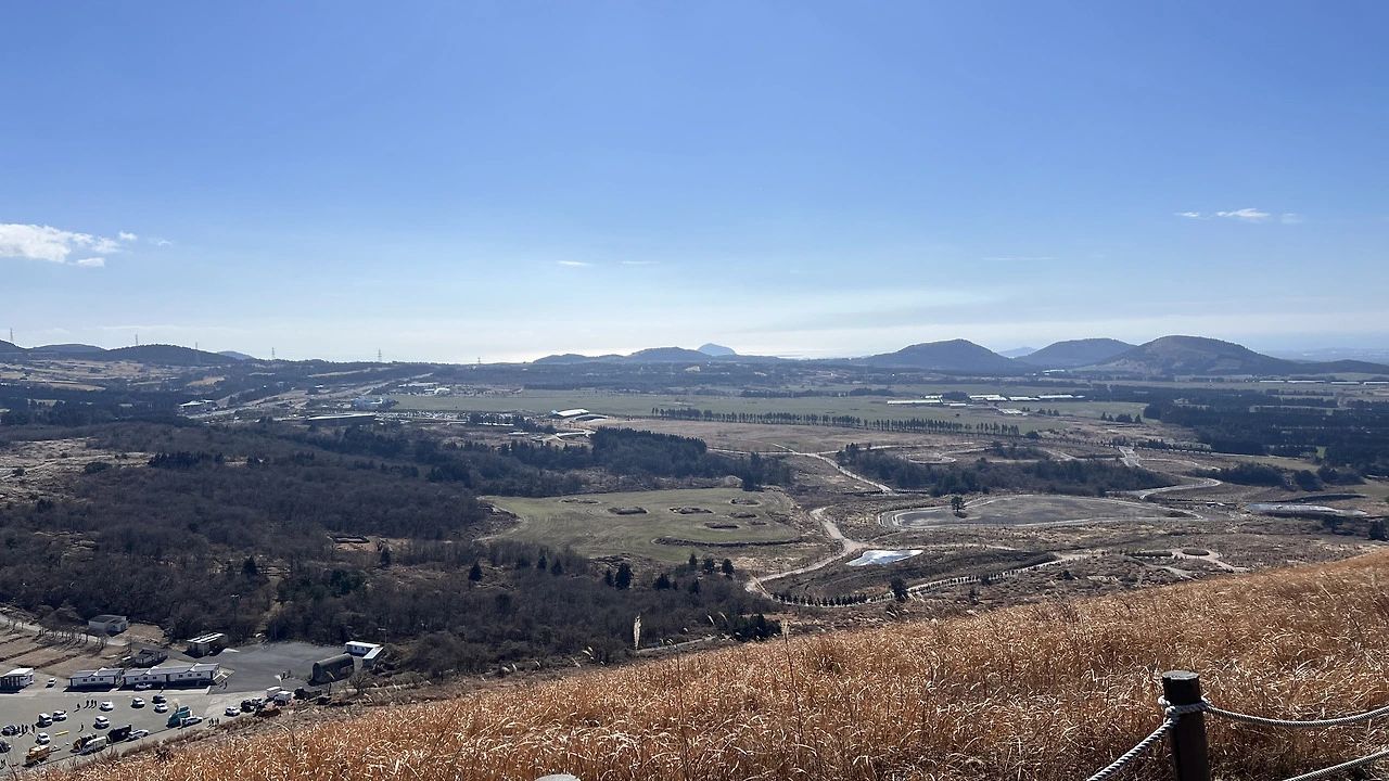 어승생악 정상 부근에는 전망대가 있어서 한라산과 제주 시내를 조망하기에 더할 나위 없이 좋았다. 맑은 날씨 덕분에 웅장한 한라산의 능선이 한눈에 들어왔고 맞은편으로는 제주시 너머의 푸른 바다와 낮은 오름들을 바라볼 수 있었다. 제주에서는 멋진 자연 전망대들이 많은데 이곳 어승생악 또한 무척 아름다웠다. 한없이 풍경에 취하고 싶었지만 시간이 한정적인 여행자에게는 언제나 다음이 있는 법. 우리는 어승생악에서 내려와서는 새별오름으로 향했다.