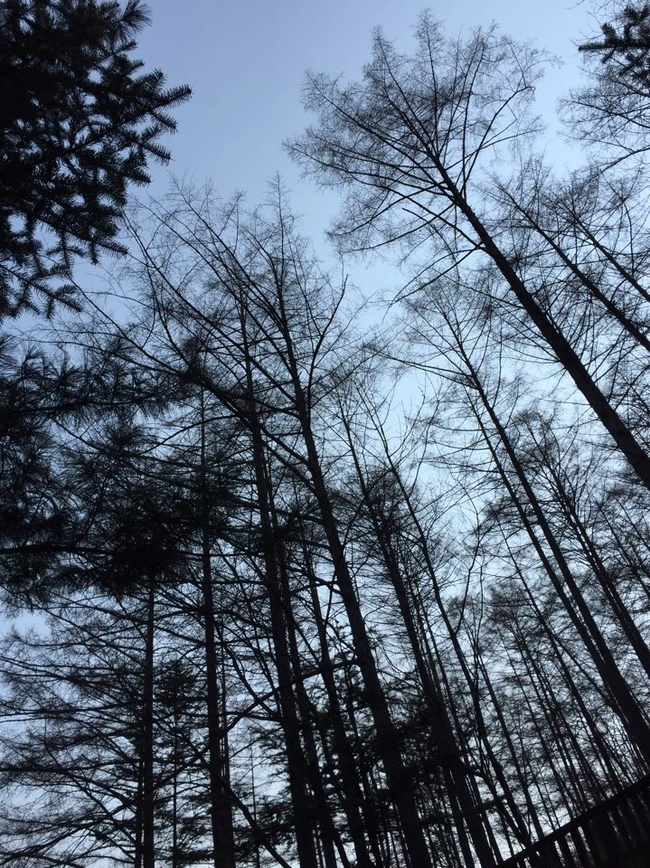4월 초에 갔을 때는 빈 나무들이 하늘을 이고 처연한 모습으로 우리를 반겨주고 있었다.