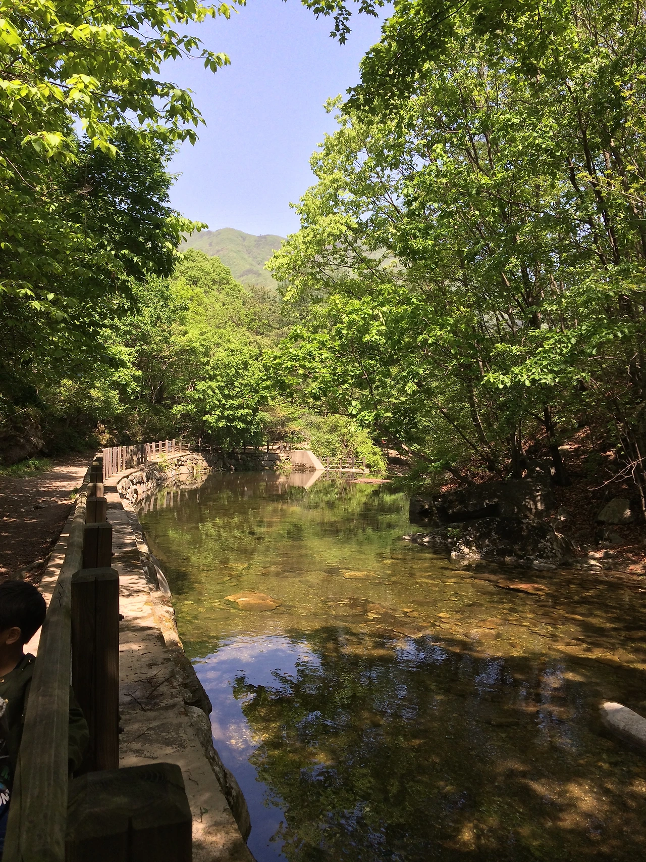 오전엔 아이들을 데리고 박쥐소까지 산책을 했다. 박쥐소까지는 500M 정도의, 아이들을 데리고 가기엔 꽤 괜찮은 산책 코스가 나온다. 등산로 입구에는 작은 매점도 있어 산책 시작 전에 아이스크림도 하나씩 먹고 출발할 수 있다. 가을에 가면 가평의 질 좋은 잣까지 맛볼 수 있는 매점이다. 여기서 키우는 강아지와 놀며 아이스크림 하나씩 먹고 나면 본격적으로 등산로를 따라 산책을 시작한다. 곳곳에 맑은 계곡이 있어 산책길이 심심하지 않다. 가다가 계곡에서 물고기도 구경하고 발도 담가보고 하다 보면 박쥐소까지 오가는 길이 무척이나 정겹다.