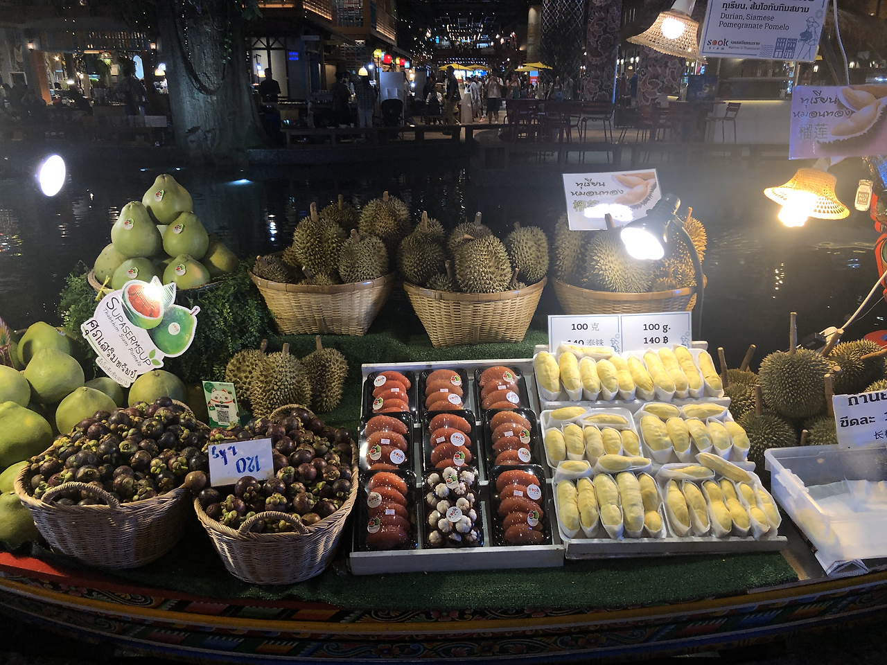 아이콘 시암의 과일 노점에서는 간이 테이블이 마련되어 있어서 두리안을 사면 그 자리에 앉아서 먹을 수 있었다. 거기다 칼로 먹기 좋게 두리안을 썰어주기까지 한다. 두리안을 먹고 있는데 가게 주인 아저씨가 커다란 두리안 하나를 꺼내 해체작업을 하기 시작했다. 우리는 두리안을 다 먹고서도 노란 속살이 가지런히 진열되는 것까지 구경하고 나왔다.