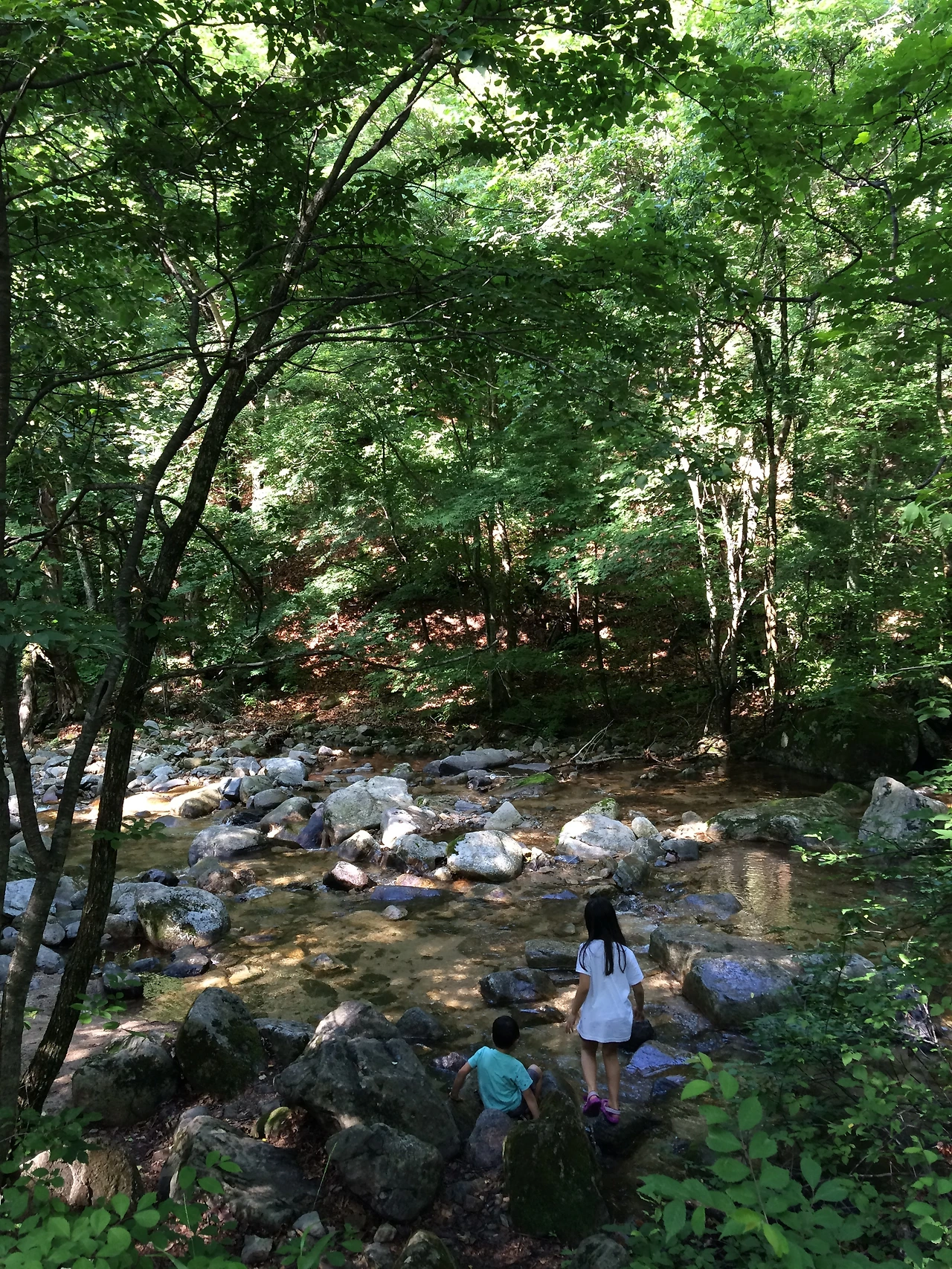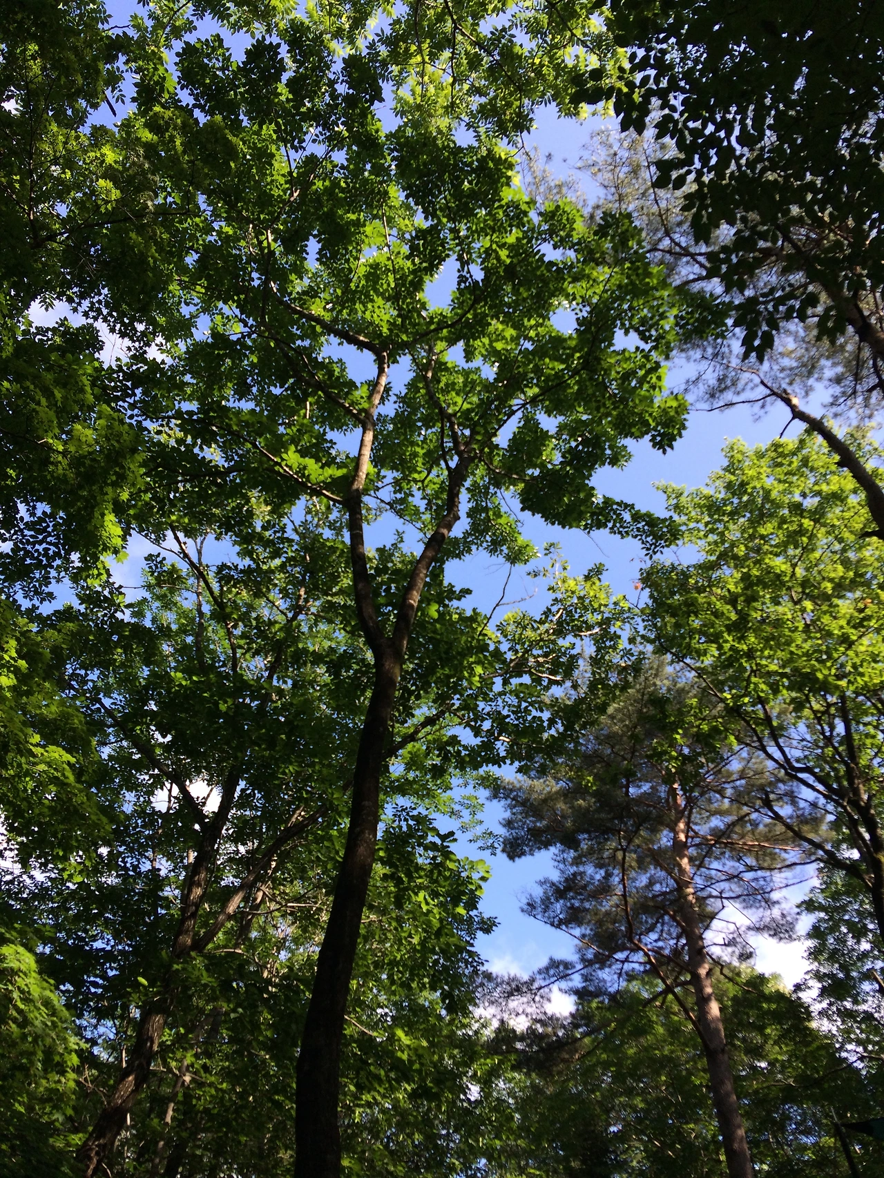 점심이 되자 햇살은 제법 뜨거워졌지만 찾아보면 방태산에는 서늘한 그늘이 많아 햇살에 지칠 일은 없었다. 점심을 먹고 비어있는 데크에 자리를 깔고 누워 하늘을 바라보면 배도 부르겠다, 나뭇잎들이 적당히 해도 가려주겠다, 가끔 불어오는 산속 바람에 마음이 간질간질해진다. 나무들 사이로 맑은 하늘을 바라보는 일은 언제나 즐거운 일이다. 첫날은 빗속에서, 둘째 날은 햇살 속에서 뒹굴뒹굴 그렇게 시간을 보낸다. 읽을 책도 많이 가져가고, 글감 거리도 많이 가져갔지만 사실은 숲에서는 아무것도 않고 숲을 그저 바라만 보는 일이 참 좋다.(여름 숲에 가면 한없이 늘어지고 싶은 이 마음은 뭘까요?)