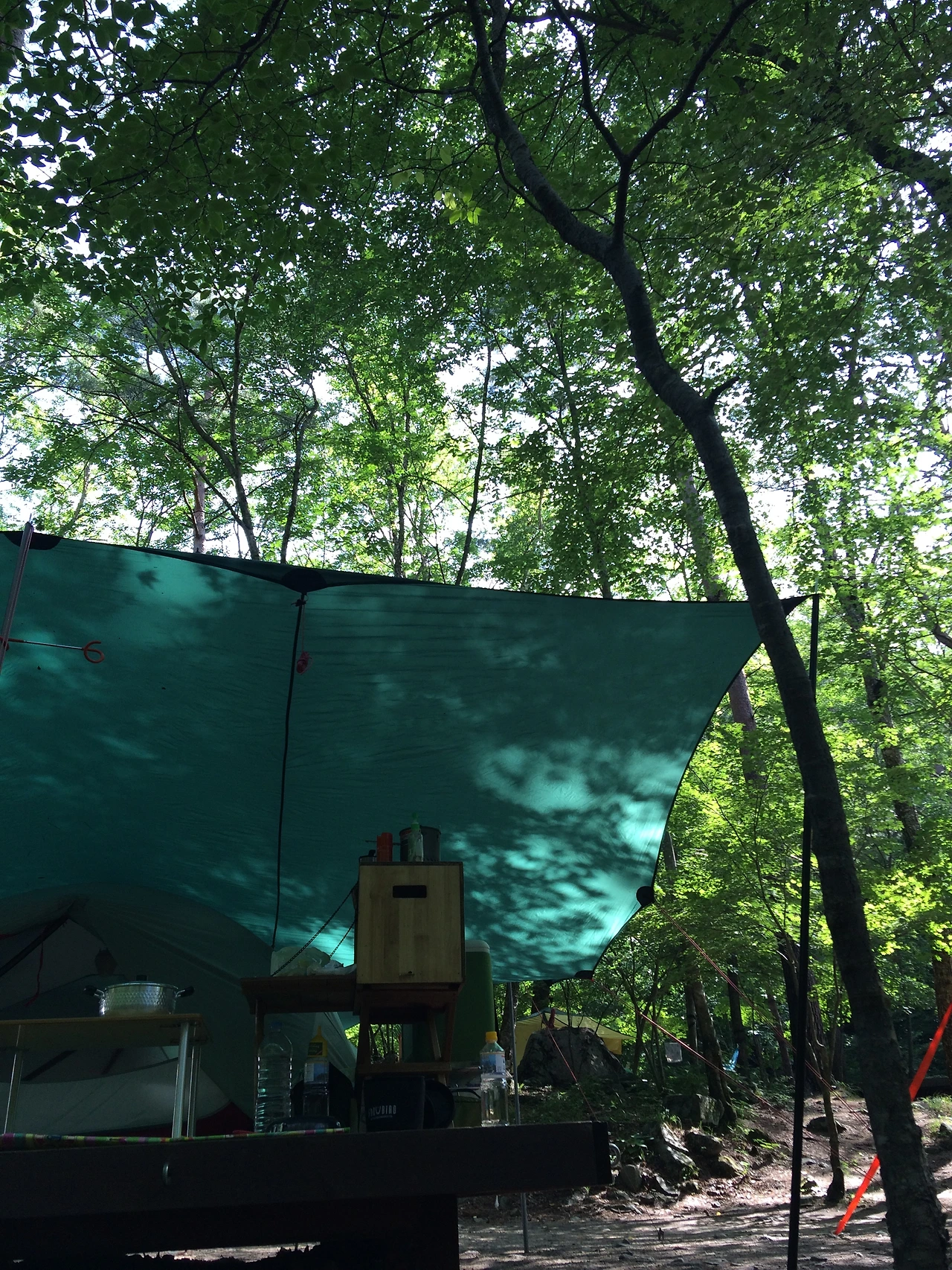 다음날, 깨어보니 맑은 날이다. 비를 몰고 왔던 구름은 먼 산 너머 가버리고 창창한 여름 햇살이 강원도 깊은 골짜기 방태산으로 비춰 든다. 오전 한 때의 햇살만으로도 남아있던 물방물들이 흔적을 감추었다. 보송보송해진 텐트와 타프가 한없이 가벼워 보인다. 그 김에 침낭도, 사람도 빨랫줄에 널린 빨래들처럼 말려본다.