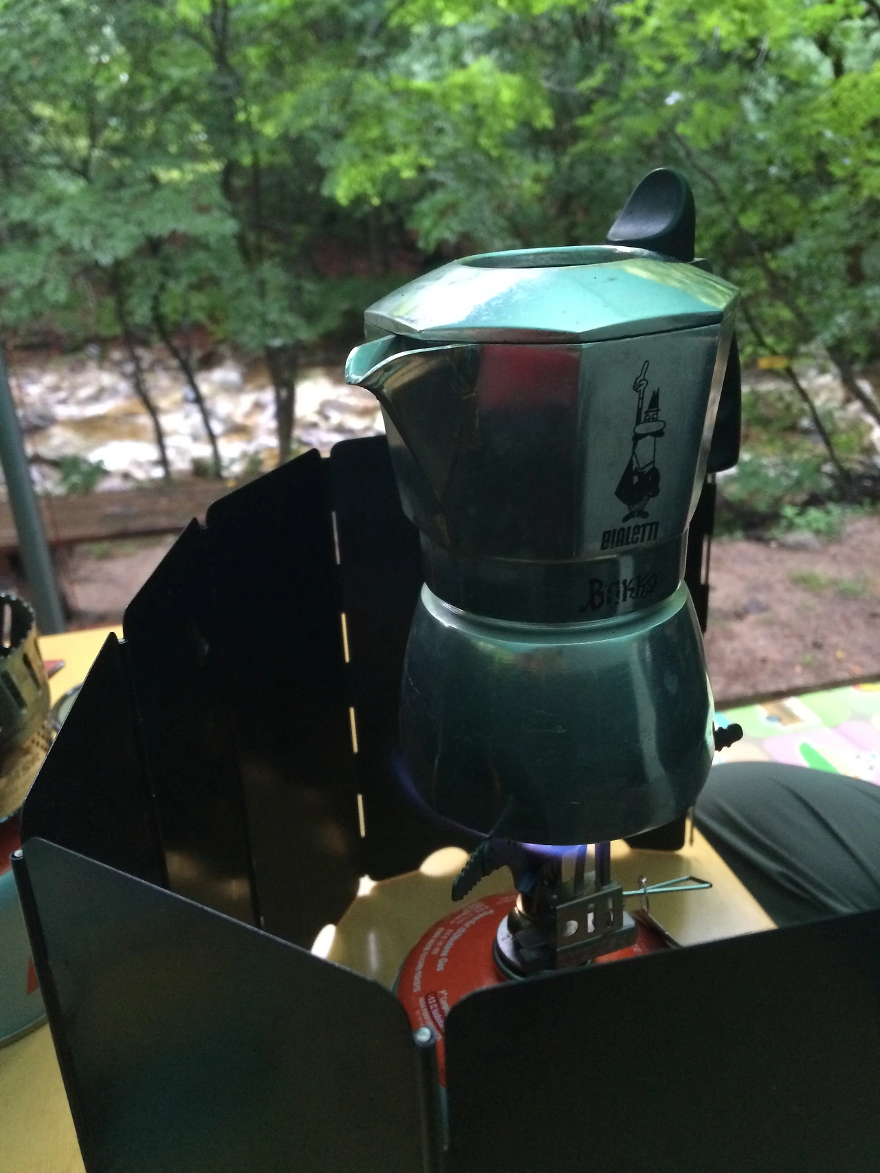 비가 종일 내리다 보면 텐트 안에 습기가 차 꿉꿉해지기 일쑤. 그럴 땐 리액터만 한 것이 없다. 겨울엔 잠시 온기를 찾아주는 리액터가 여름에는 습기를 몰고 가준다. 오랜 시간 빗속에 있어서 그런가 어깨가 움츠려 들 때 그 빛을 잠시 쬐는 것만으로 몸이 보송보송해진다. 그리고 따뜻한 커피. 칙칙 칙칙 소리를 내며 모카포트의 추가 흔들리고 비 오는 숲에 커피 향이 퍼진다. 리액터로 끓인 뜨거운 물 위에 에스프레소가 그리운 마음처럼 섞인다. 그렇게 후후 불어가며 식도를 따라 따뜻한 커피가 들어가고 나면 여름 비를 맞으며 하는 캠핑도 나름 멋진 일이 된다.