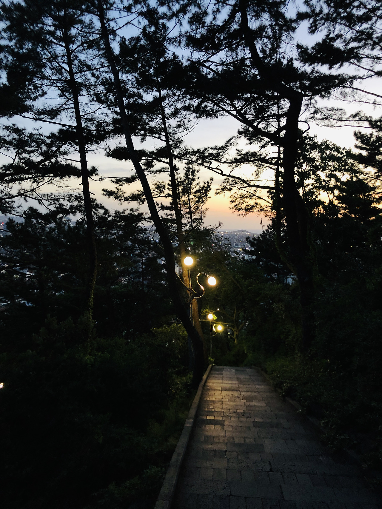 제법 어둑어둑해져서야 팔각정을 나섰다. 산 아래 언뜻언뜻 보이는 제주 시내의 불빛들이 아련하게 빛났다. 꽤 쌀쌀한 날씨였지만 추위가 크게 느껴지진 않았다. 다들 안 왔으면 어쩔 뻔했어하며 아름다운 해넘이의 시간을 곱씹으며 돌계단을 내려갔다.