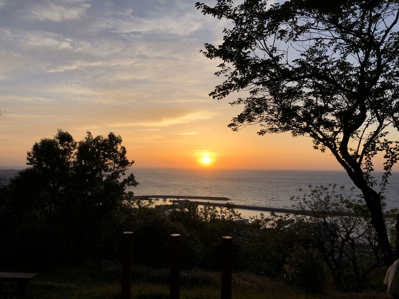 그러다 보니 해가 서서히 바닷속으로 들어가기 시작했다. 해가 지는 건 아주 금방이었다. 살짝 수평선에 닿는 듯하더니 이내 해의 머리만 살짝 보이다가 아름다운 하늘만이 거기에 해가 있었구나 짐작하게 한다.