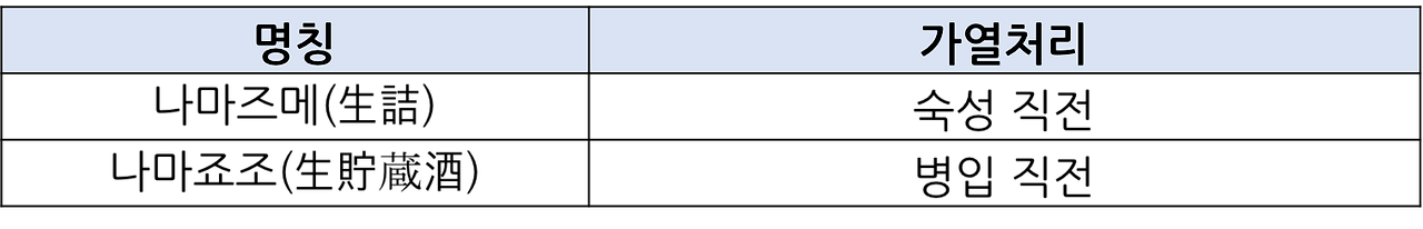 일반적으로 사케는 가열처리를 숙성 직전, 숙성이 끝난 후 병에 담기 직전 총 2번에 걸처 열처리를 한다. 이 과정에서 미생물들이 다 죽어간다고 보면 된다. 나마즈메와 나마죠조는 열처리를 한 번만 한다. 나마즈메는 숙성 직전, 나마죠조는 병에 담기 직전이다.