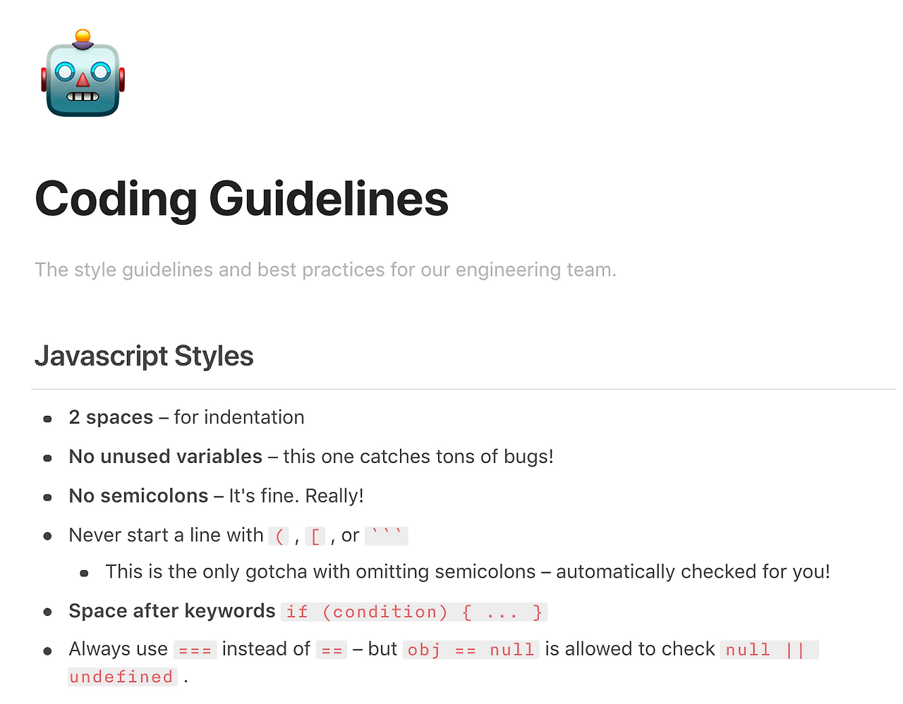 개발자가 아니라서 코드를 작성할 일이 없지만, 에버노트에는 없는 또 다른 기능입니다. 코드 작성을 원활하게 해주는 기능이죠. 개발자분들도 Notion을 활용할 수 있게 배려했습니다.