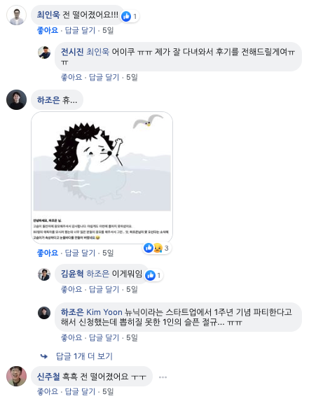 고슴이의 돌잔치에 오려면 고슴이의 돌잔치에 가고 싶은 이유 등 신청서를 작성해야 했습니다. 제가 무슨 내용을 썼는지는 기억이 안 나지만 합격했다는 메일이 취업 소식만큼 기뻤어요. 게다가 경쟁률이 이렇게 높았다니.. 그리고 제 페친 분들은 다들 탈락했다는 슬픈 소식만 들려서 제 타임라인은 눈물바다가 되었답니다.