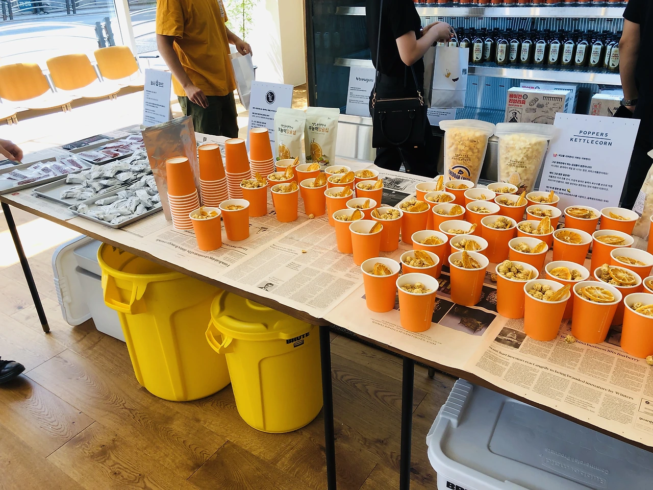 뒤에 마련되어 있는 간식들을 담아 먹으라며 흰 종이 가방을 나눠주셨어요. 처음에 줄 때는 음 그냥 고슴이가 듬성듬성 있는 종이가방이구나 했는데, 몇몇 눈에 띄는 걸 보니 그냥 흰 가방에 고슴이 스티커를 붙여놨더라고요. 그래서 이 흰 가방이 받아 가는 사람마다 모두 다른 가방이었습니다. 뭔가 나만의 가방이 생긴 기분이었어요.