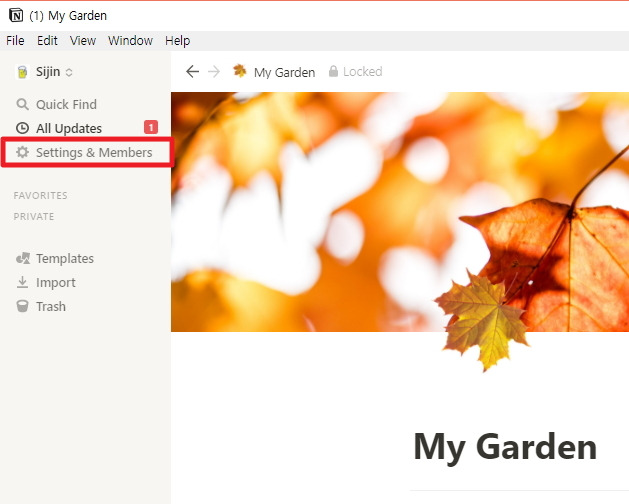 1. 기존에 사용하던 계정으로 접속한 후 왼쪽 사이드바에 Settings & Members 에 들어갑니다.