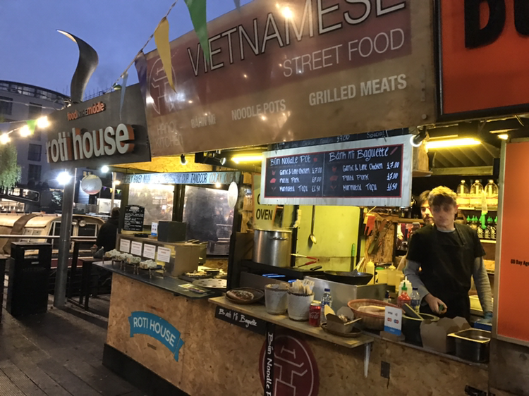 팔지 않았다. 푸드코트의 분위기상 스트릿푸드들과 맥주를 먹으면 금상첨화다. 우리가 먹을땐 비까지 와서 캠든락 쪽 하천(?)을 바라보며 우산을 쓰고 먹었다. 분위기가 아주 좋다. 그런데 맥주를 파는 공간은 따로 있었고 그곳에서만 구매해서 마실 수 있다. 스트릿푸드를 들고 들어가서 맥주를 마실 수도 없는 것 같았다. 바깥 테이블에서는 맥주를 먹을 수 없게 되어있다. 정말 아쉬운 부분이다.