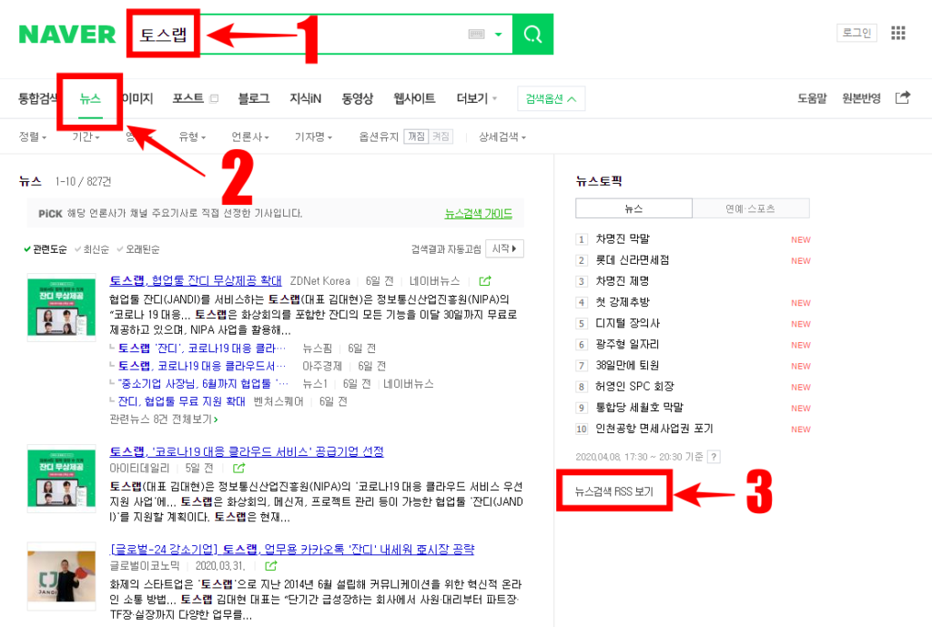 3) 오른쪽 아래 '뉴스검색 RSS보기' 클릭
