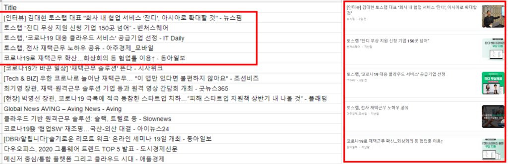 구글 뉴스 탭에 가서 비교해보면 같은 뉴스 리스트인 것을 확인할 수 있습니다.