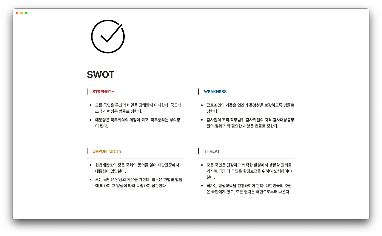 SWOT 분석까지 완벽하게 되어 있었습니다.