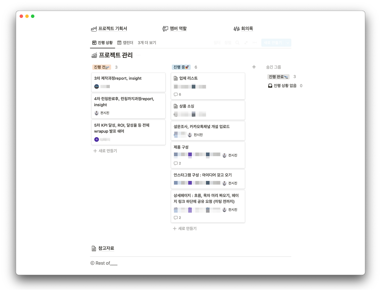 프로젝트의 성공도 중요하지만 사이드 프로젝트는 기존 업무 방식에서 벗어나 새로운 것을 시도하고, 경험을 쌓기 위해 진행한다고 생각하여 노션을 이용한 업무 방식을 제시했습니다. 큰 조직에서 일하시는 분들이라 조금 어려워하셨지만, 이번 기회를 통해 새로운 업무 방식을 경험시켜드리고 싶었습니다.