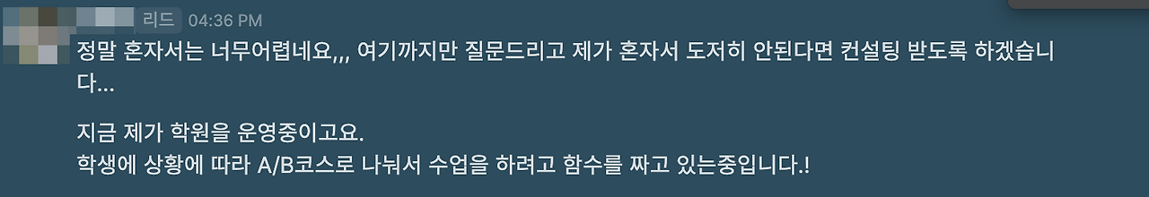 이걸 해결하면 컨설팅을 받을 필요가 없겠군(?) 이란 생각이 들었지만 오랜만에 까다로운 조건의 문제를 풀어보고 싶다는 도전의식이 들었어요. 산책을 가다가 돌아와서 결국 손을 대고 맙니다.