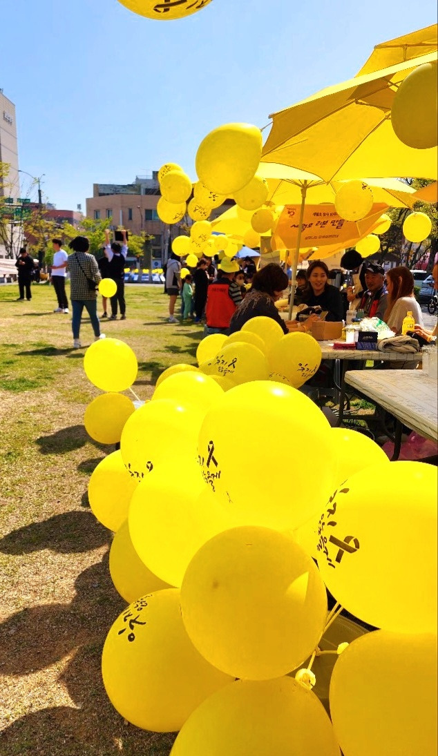 노란색 풍선이 하늘하늘 둥실둥실... 10살도 되지 않은 어린 초등학생들이 풍선을 들고 달려갑니다. 그들은 이 노란풍선의 의미를 알까. 어제 세월호참사 10주기를 추모하기 하기 위해 군산시민들이 준비한 현장에 있었는데요. 시낭송 회원들이 들려주신 10여편의 시들이 노랑풍선이 되어 하늘을 날았습니다. 아마도 희생자가 계신 하늘 그 어딘가에 살아남은 자들의 미안한 마음이 들렸기를 고대하면서요. 낭송가들이 읊었던 시 몇편,,, 검색한번 하셔서 읽어보실래요? <아, 숨쉬기도 미안한 사월/ 함민복> (낭송, 전재복), <꽃이 진다고 그대를 잊은적 없다/ 정호승> (낭송, 이안나), <미안하다 예전엔 몰랐다/ 전재복> (낭송, 양주영), <이별은 차마 못했네/ 박노해> (낭송, 박선희), <수선화에게/ 정호승> (낭송, 채영숙), <정말 그럴 때가/ 이어령> (낭송, 김형순), <사람이 그리워야 사람이다/ 양광모> (낭송, 이숙자), <화인/ 도종환> (낭송, 강리원)입니다. 낭송가들의 정성으로 올려지는 시의 낭송시간은 마치 하늘을 향한 제문과 같은 느낌이었습니다. 현장에서 시낭송을 들은 분들도 함께 마음을 모아 기도의 시간을 가졌습니다. 벌써 10년이나? 했던 남의 일에서 이제 10년밖에 되지 않은 가까운 나의 일이 되었지요. 아마도 시를 읽다보면 당신께서도 저와 같은 마음이 되실거예요. 오늘은 아주 오랜만에 친정엄마와 함께 고향섬에 가네요. 그곳도 김영삼정부 때 ’서해 훼리호 침몰사건‘이라는 슬픔의 역사가 있는 곳이지요. 1993년 이 섬 앞바다에서 약 300여명의 희생자가 있었거든요. 고향 친척분들의 희생도 함께 있었기에, 배를 타고 섬에 들고 날 때마다 바다의 무서움을 더 체감할 수 있답니다. 하지만 그 두려움을 이겨낼수 있도록 도와주는 것, 바로 배를 따라 함께 항해하는 갈매기떼... 오늘도 어린 조카들의 손짓이 그려지네요. 평화로운 일요일, 당신의 일상 속에 이름모를 희생자들을 위한 기도 한 마디 더해지면 좋겠습니다. 오늘은 함민복 시인의 <숨쉬기도 미안한 4월>입니다. 봄날의 산책 모니카.