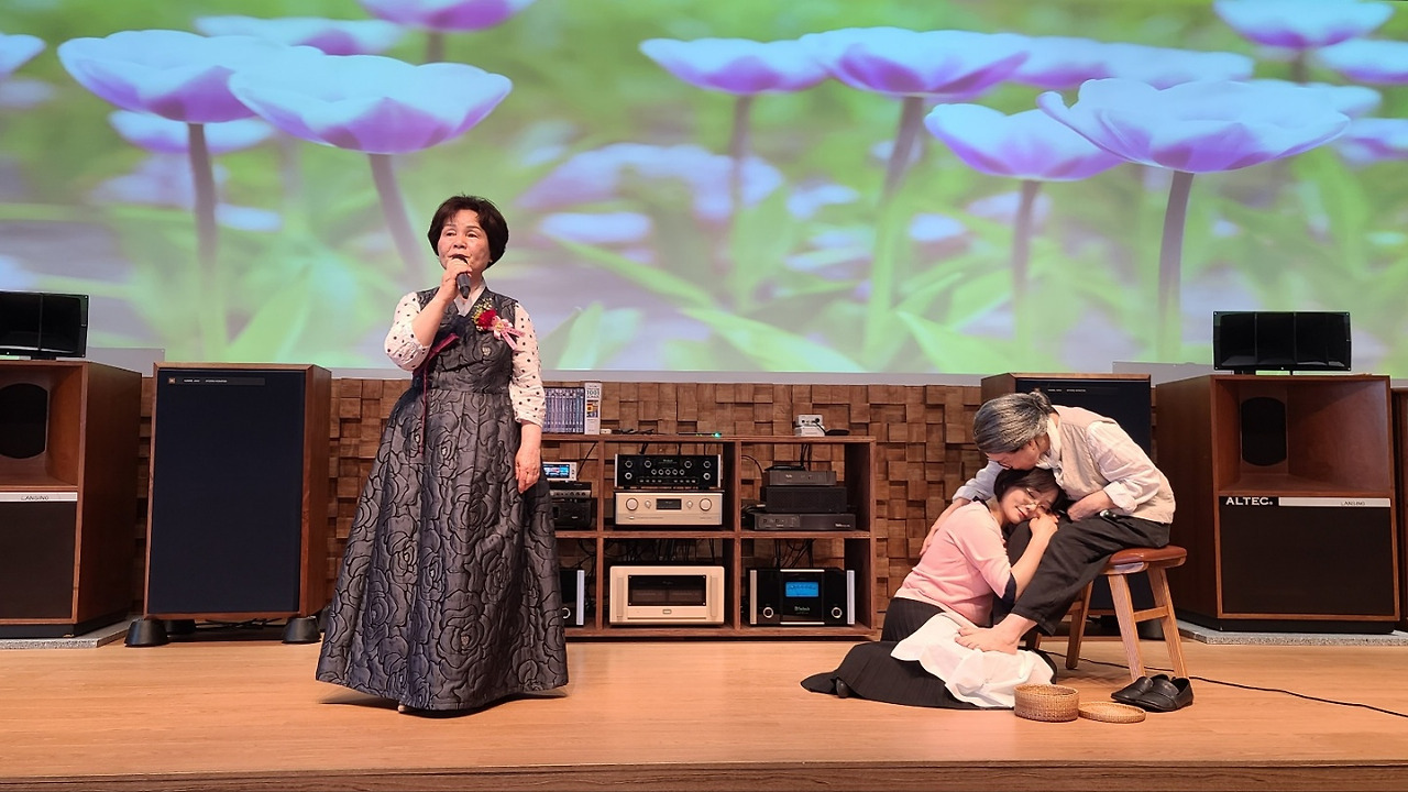 어머니, 아버지를 그리워하며 울려퍼진 시낭송 15수. 배움에는 끝이 없다 하더니, 정말 그 말이 맞나봅니다. 어제는 평생에 한번 있을까 말까 한 시 낭송 무대에 올라갔지요. 물론 저는 암기를 못해서 낭독의 형태로 해도 된다는 허락을 받고서요. 아침부터 약속된 일들이 줄줄이 있어서, 발표할 시- 이해인시인과 이문희시인의 <오월의 시>-를 제대로 연습도 안하면서 두 개나 준비한 이 무모함은 어디에서 나온 야욕이었는지... 하여튼 함께 낭독한 지인 덕분에 즐겁게 발표했답니다. 가정의 달을 기념하는 마음으로 준비한 시 낭송의 주제는 ’어머니, 아버지 사랑합니다‘ 였습니다. 참석하신 어르신들께 카네이션도 달아드리고, 무한한 사랑의 인사로 시작한 한시예 회원님들!! 낭송한 시 중 기억에 남는 시 3편이 떠오릅니다. 낭송가들이 낭송모습은 마치 한편의 네거티브 영화 필름이 영사기 안에서 돌아가면서 멀고 먼 옛날의 어머니가 각기 다른 모습과 목소리로 관객들에게 다가오는 듯했습니다. 이승하 시인의 <늙은 어머니의 발톱을 깎아드리며>, 문정희시인의 <어머니의 편지>, 정채봉시인의 <엄마가 휴가를 나온다면>입니다. 정말 감동적인 낭송무대였습니다.